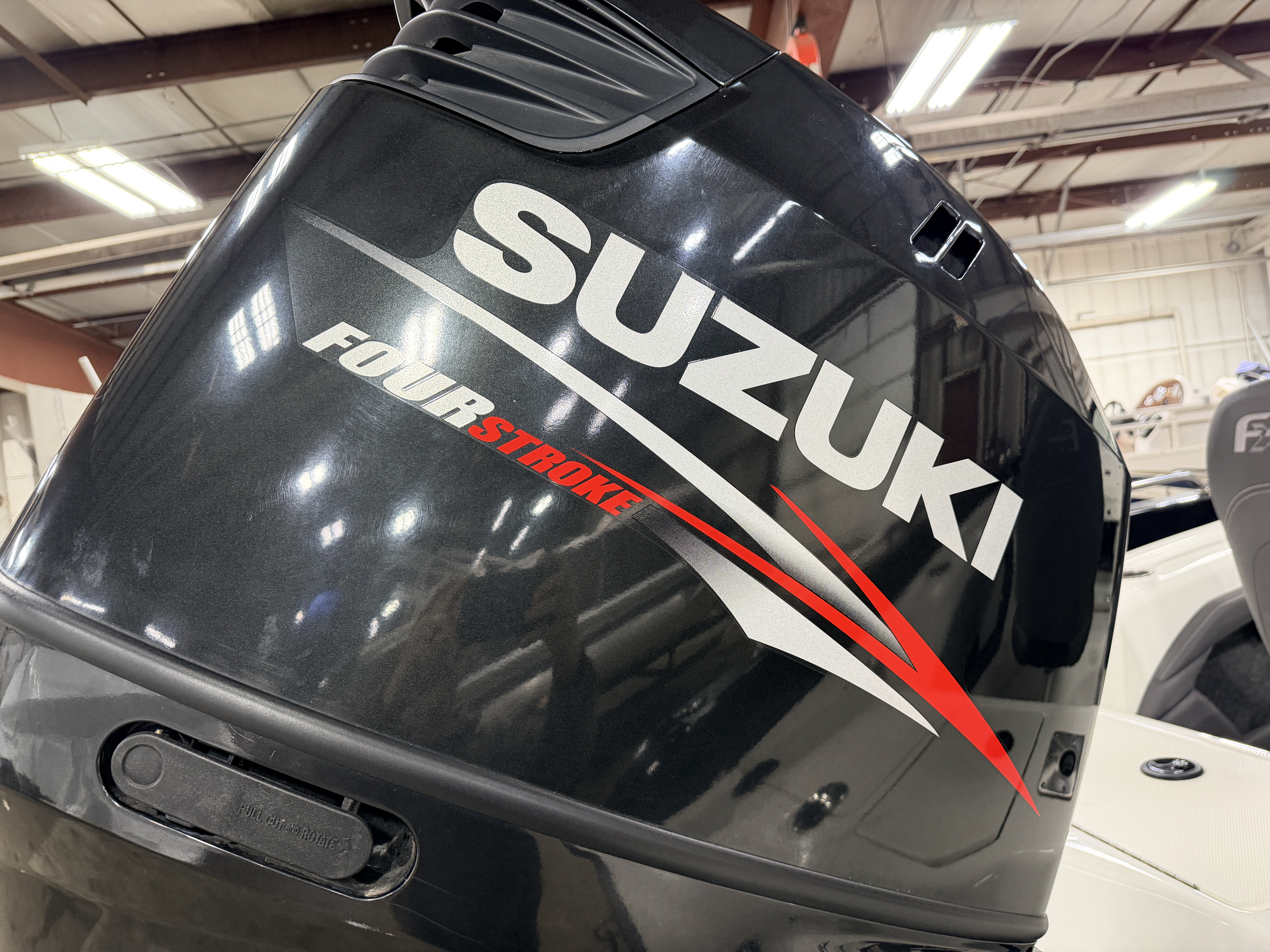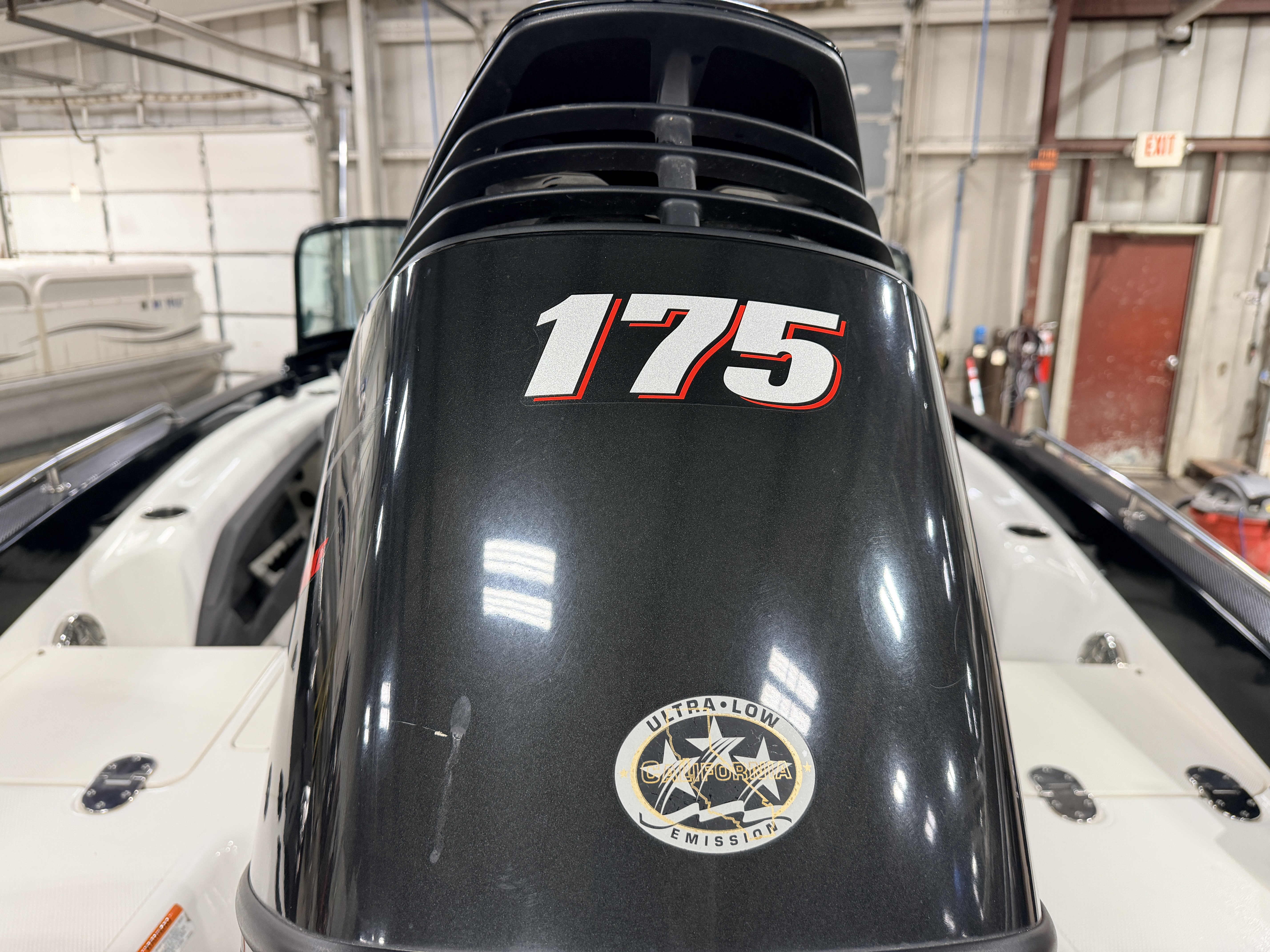 Outboard. This fiberglass fishing boat has great power and great features for a