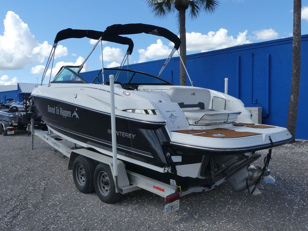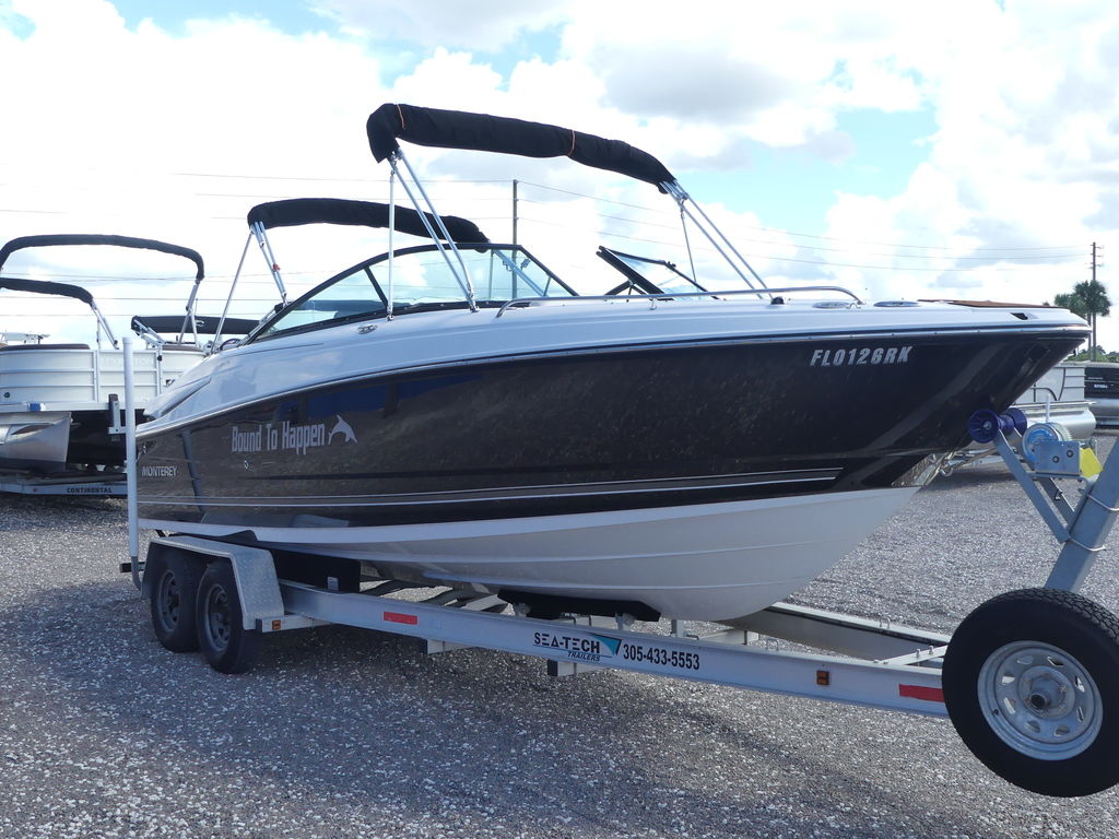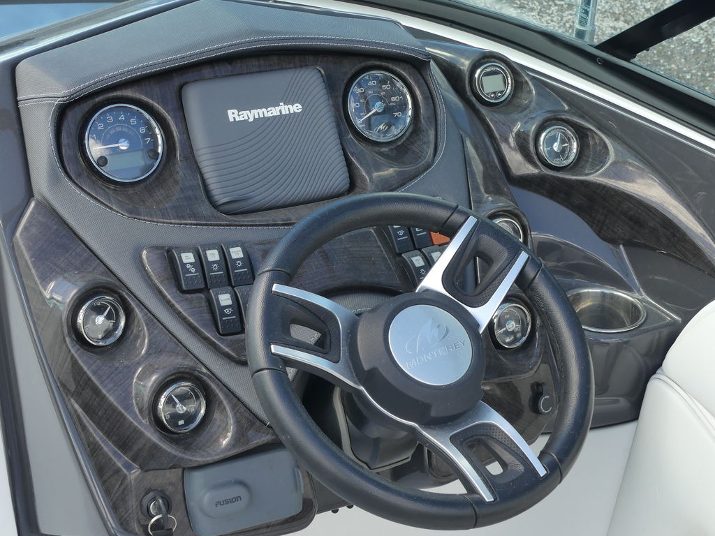 Tunes in the SunOur Monterey Sport Boat 264FS comes standard with a fusion Satellite ready am/fm stereo system with built-in iPod dock & speakers, dash remote, and mp3 adapter. Want a little more? Upgrade...