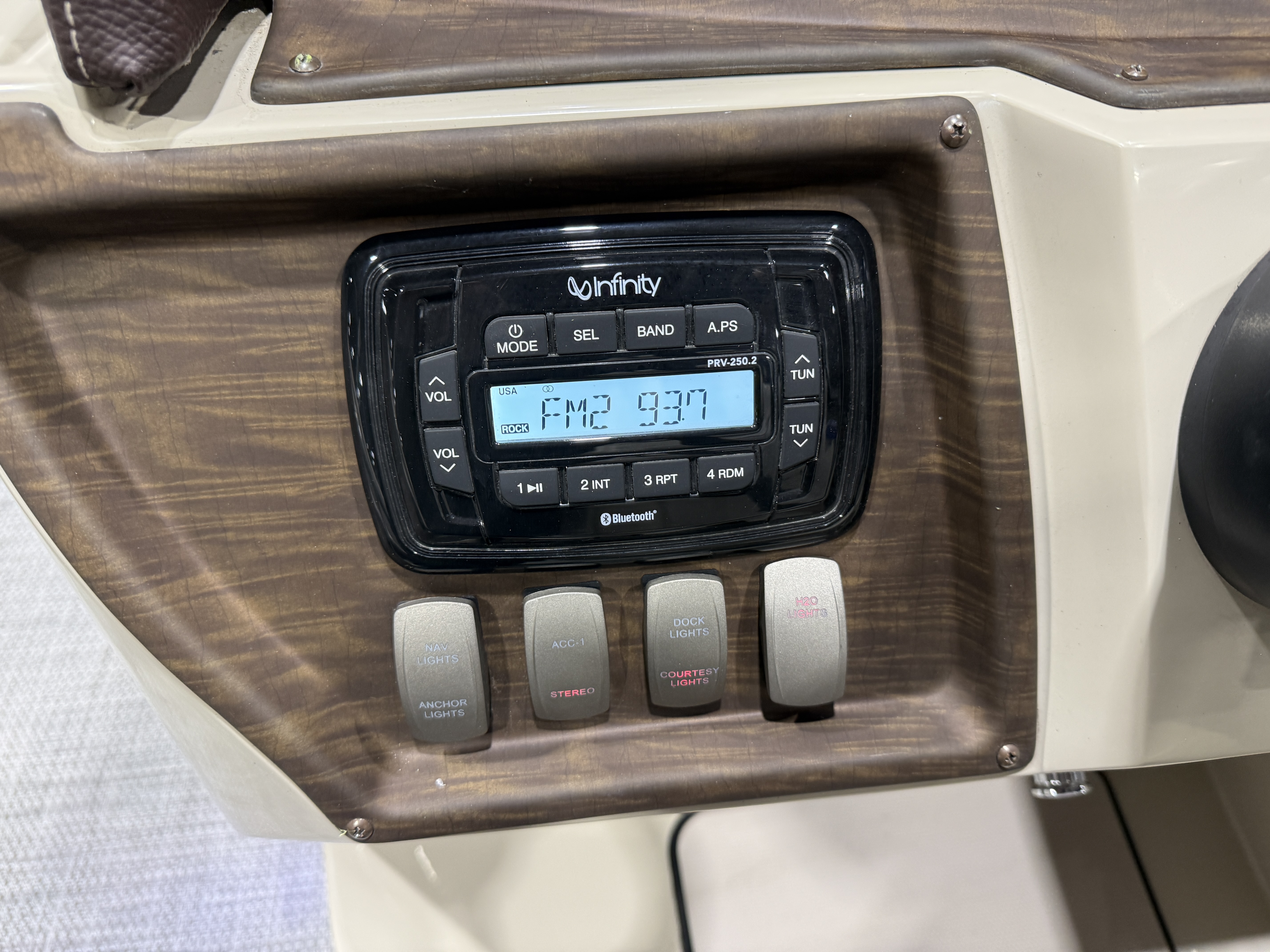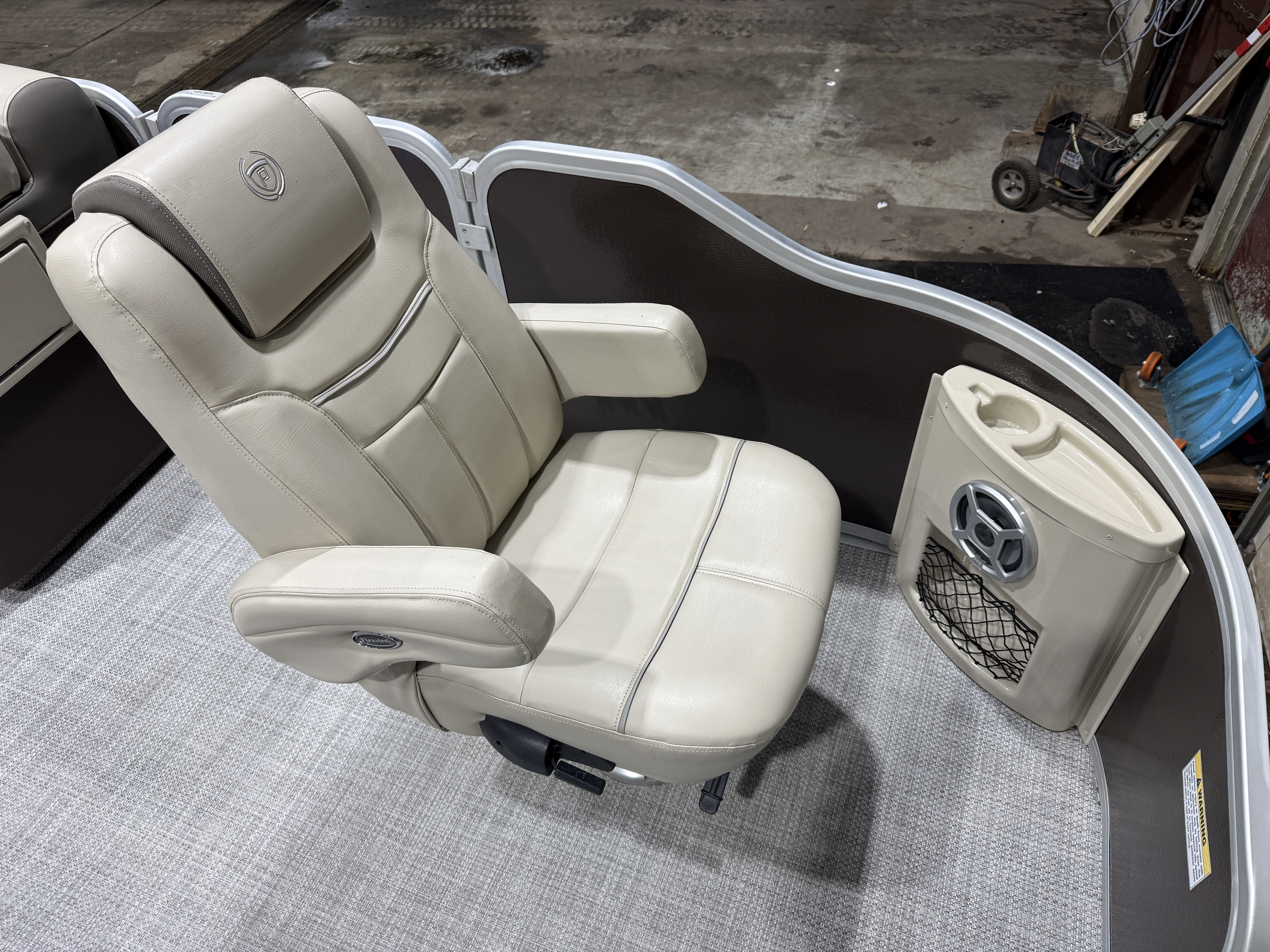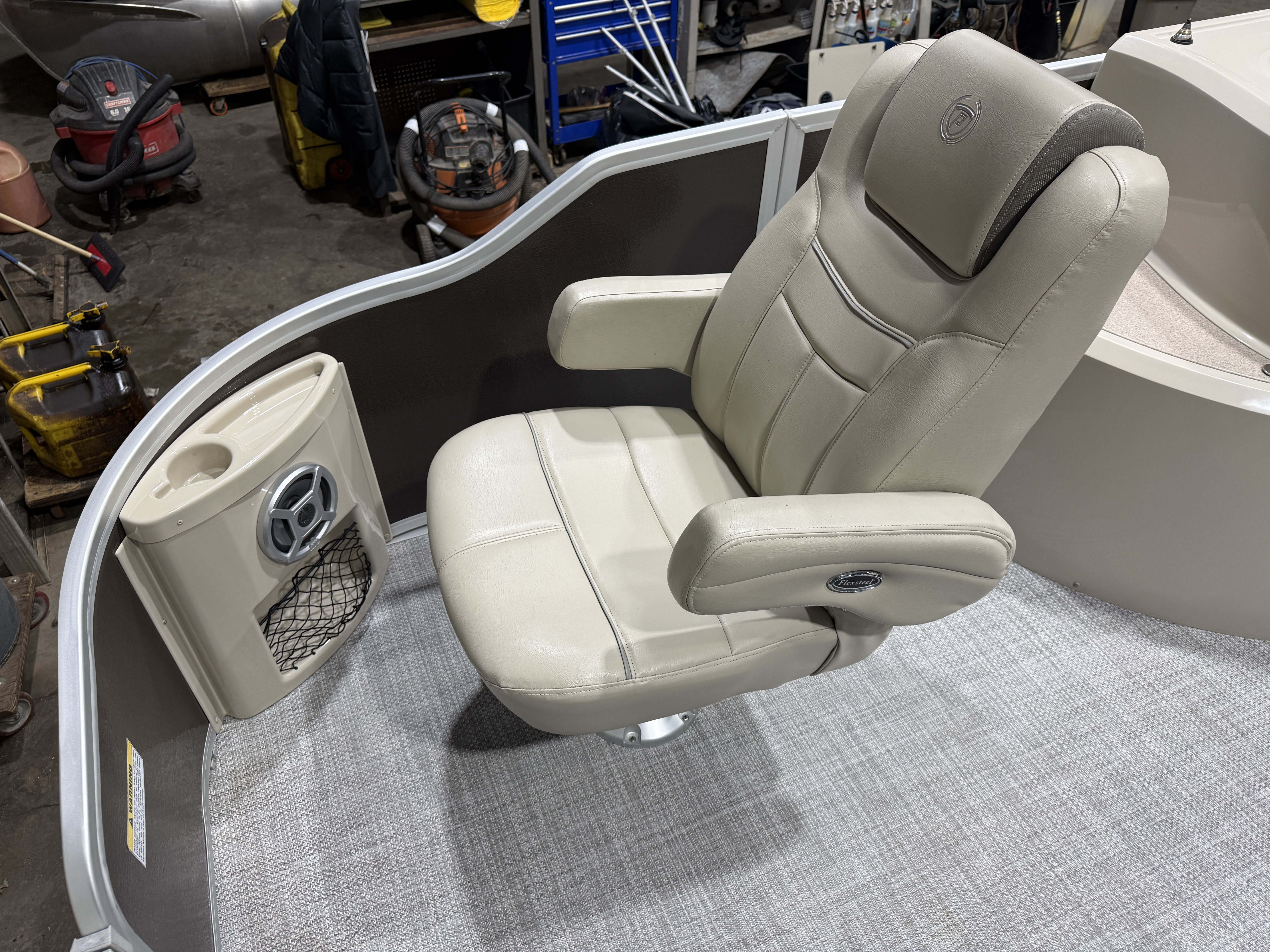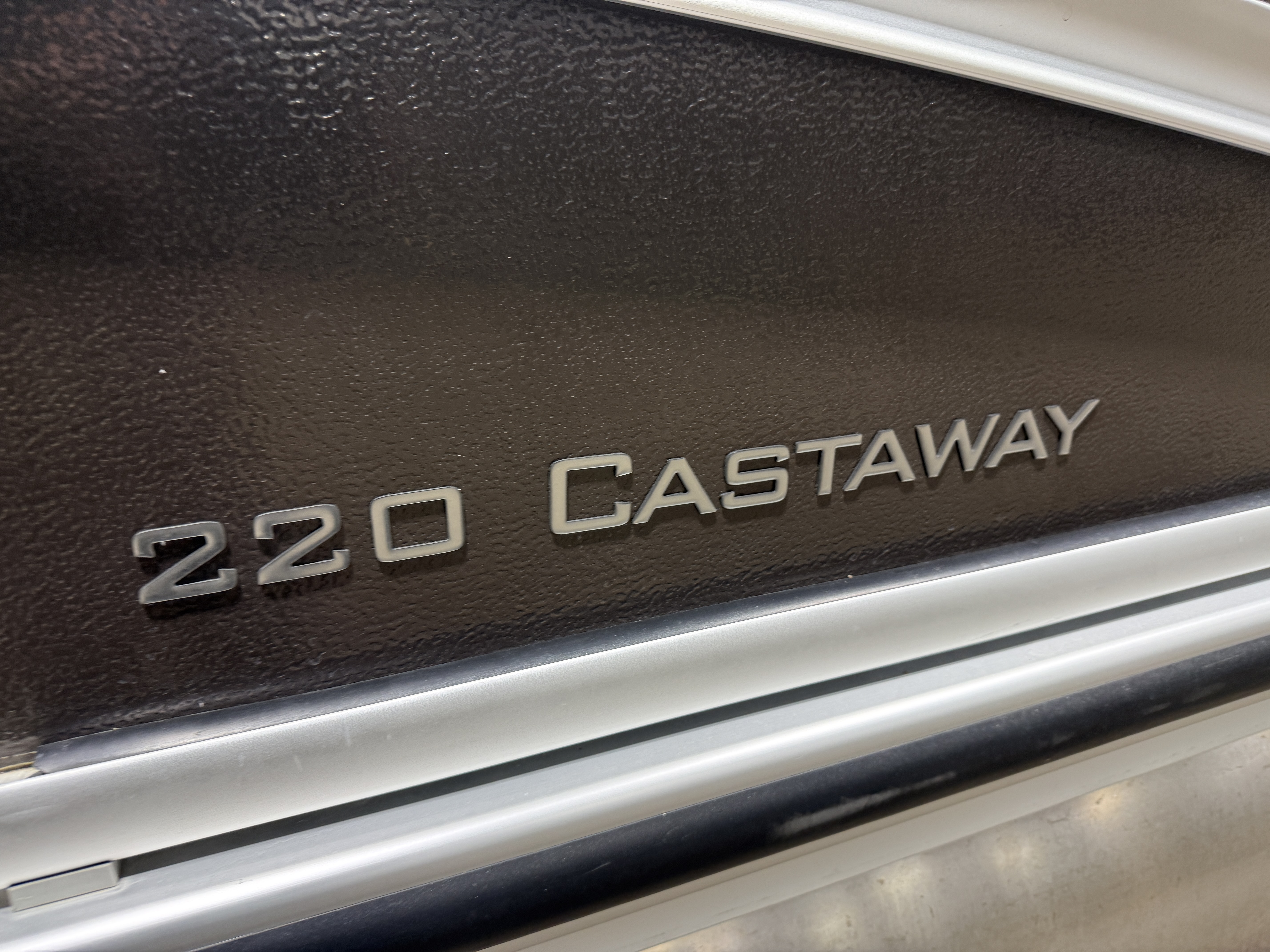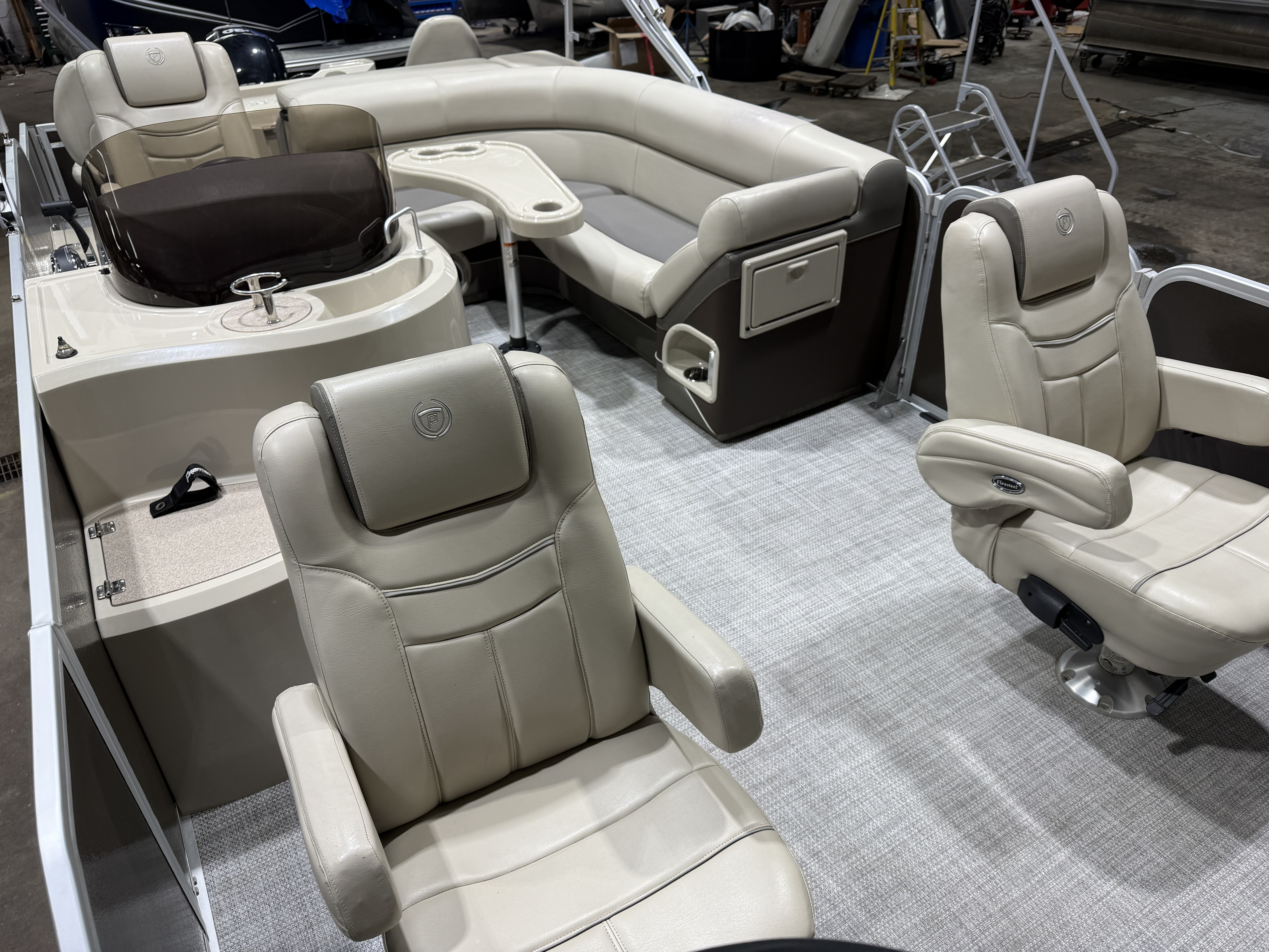 2016 Premier 220 Castaway Pontoon & Mercury 90HP 4-Stroke EFI CT w/94Hours. This 22' Quad Fish Pontoon Has Upgraded Flexsteel Reclining Captain's Seats Up Front, Huge Front Livewell In The Front Of The Helm With A Paper Towel Holder, Sink & 2.5 Gallon Freshwater Tank, Wrap Around Chaise Lounge Seating With Storage & Built-In Trash Can Door, Reclining High Back Captain's Seat With A Raised Helm, 2 Rear Fishing Seats & Livewell, Side Rod Locker Storage, All Vinyl Flooring, Helix 7 GPS Depth Finder, Bluetooth Radio, Multiple Cup Holders, 25" Tubes, Built In 31 Gallon Gas Tank, Changing Station, Two Bait Tackle Storage Compartments, Mooring Cover, Bimini Top, LED Docking Lights, LED NAV Lights, Bimini Top, New Battery, Table, Rear Ladder w/Underwater Lighting, Mood Lighting, Multiple Vertical Rod Holders, Buoy Holders. This Pontoon Is Rated For 11 People