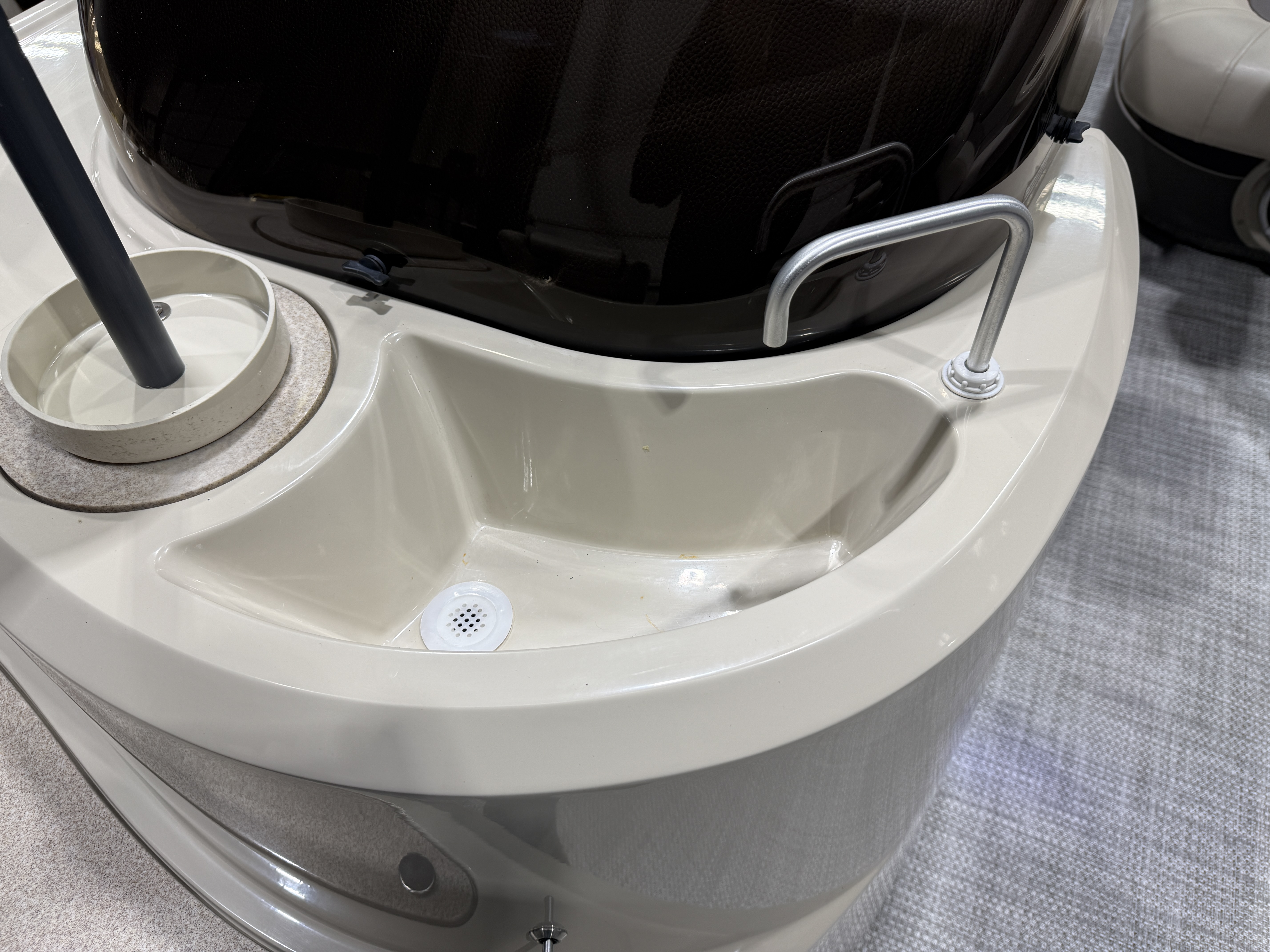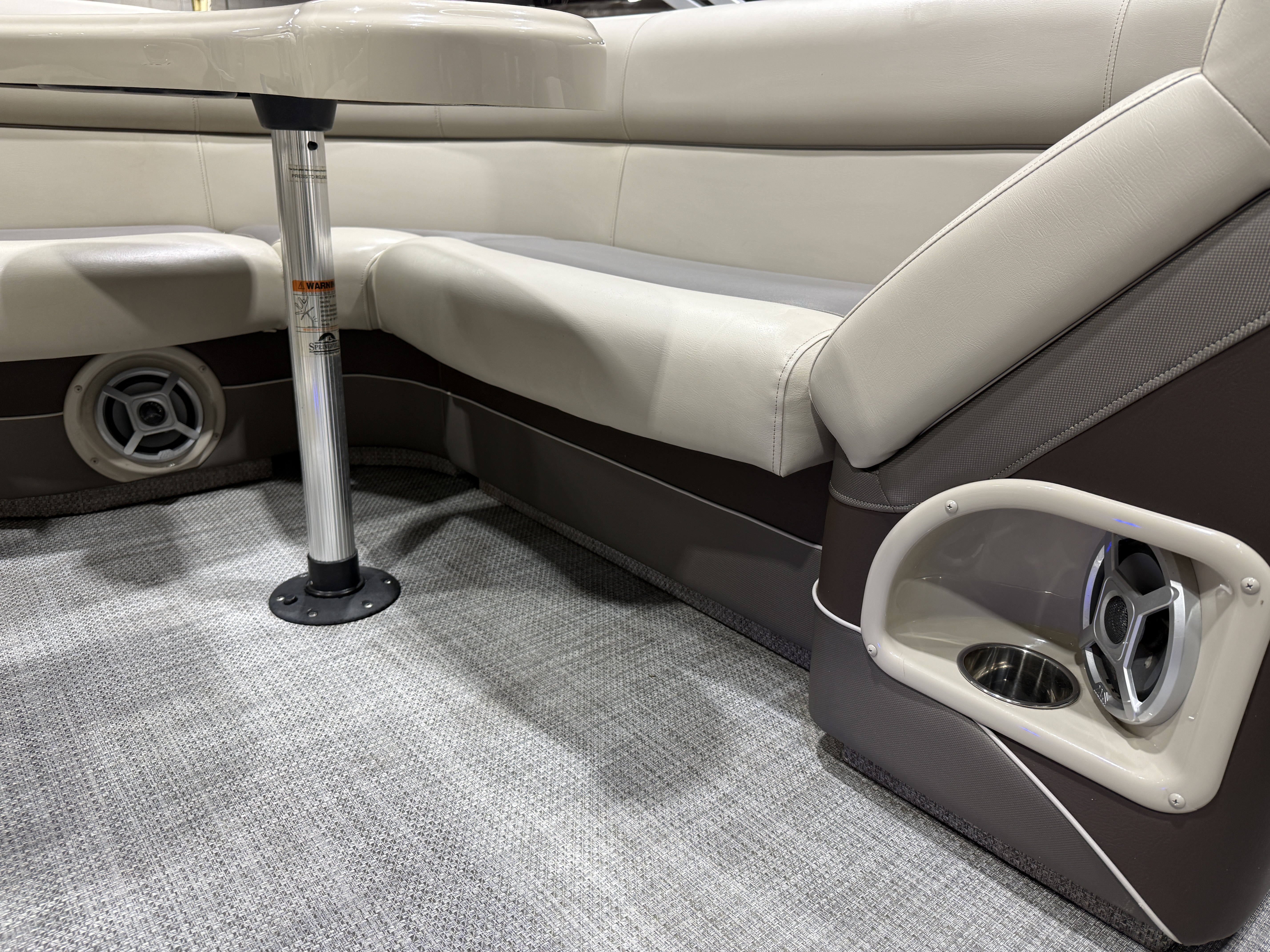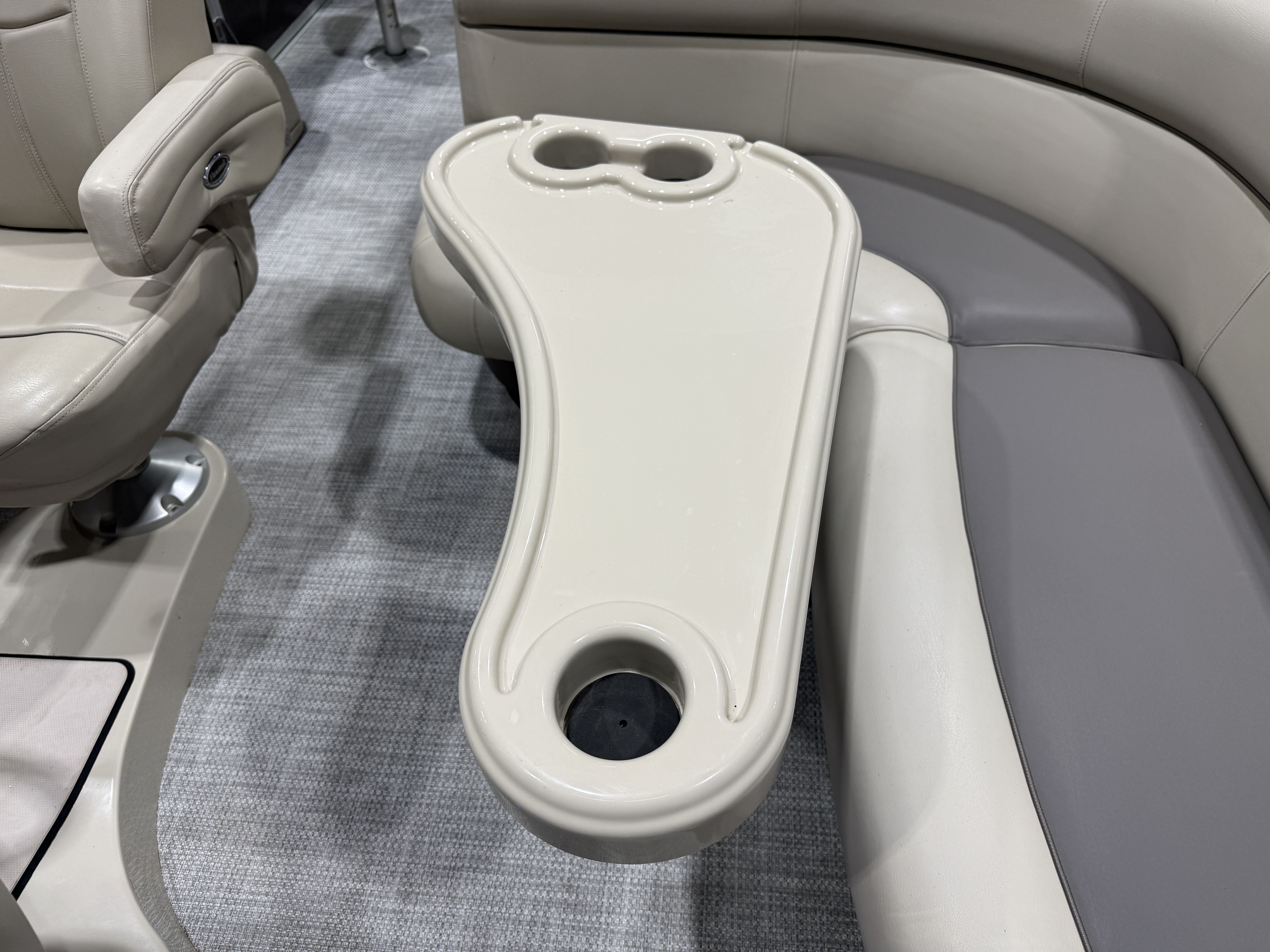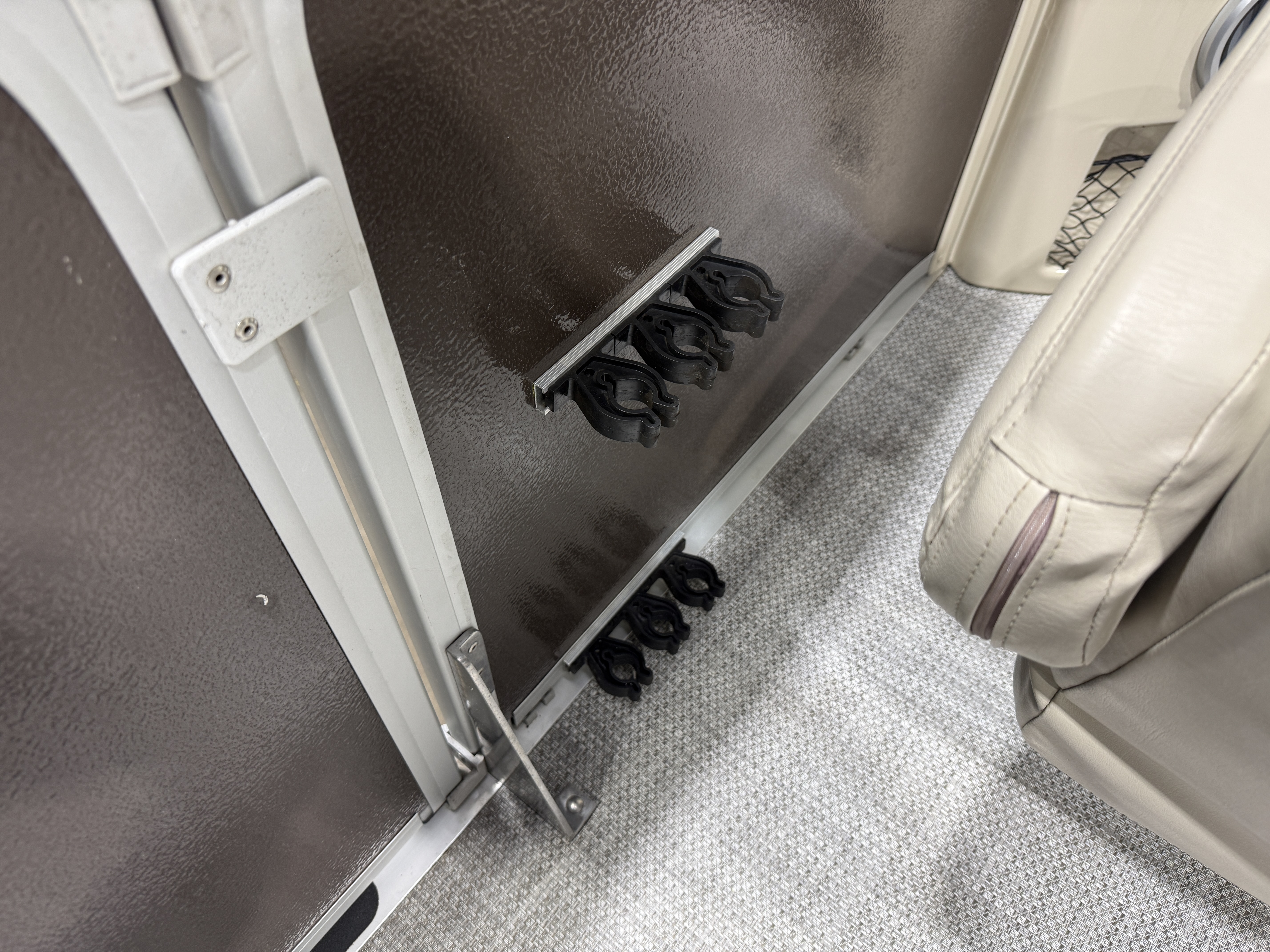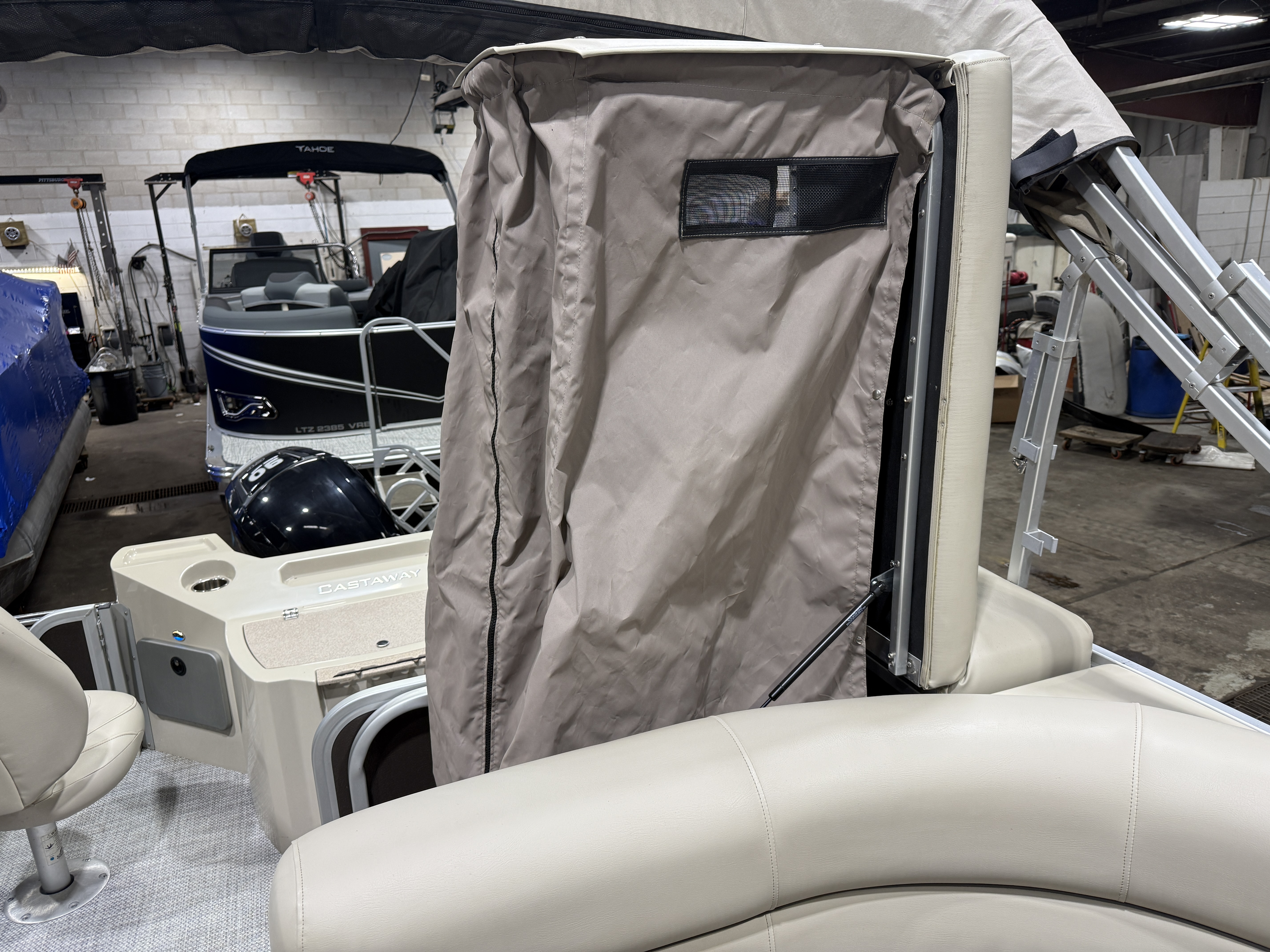 2016 Premier 220 Castaway Pontoon & Mercury 90HP 4-Stroke EFI CT w/94Hours. This 22' Quad Fish Pontoon Has Upgraded Flexsteel Reclining Captain's Seats Up Front, Huge Front Livewell In The Front Of The Helm With A Paper Towel Holder, Sink & 2.5 Gallon Freshwater Tank, Wrap Around Chaise Lounge Seating With Storage & Built-In Trash Can Door, Reclining High Back Captain's Seat With A Raised Helm, 2 Rear Fishing Seats & Livewell, Side Rod Locker Storage, All Vinyl Flooring, Helix 7 GPS Depth Finder, Bluetooth Radio, Multiple Cup Holders, 25" Tubes, Built In 31 Gallon Gas Tank, Changing Station, Two Bait Tackle Storage Compartments, Mooring Cover, Bimini Top, LED Docking Lights, LED NAV Lights, Bimini Top, New Battery, Table, Rear Ladder w/Underwater Lighting, Mood Lighting, Multiple Vertical Rod Holders, Buoy Holders. This Pontoon Is Rated For 11 People