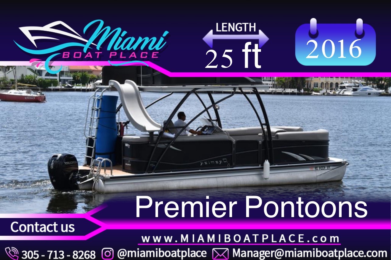 The powerboat Premier Pontoons Solaris 250 RE was produced by the brand Premier Pontoons with production starting in 2016. The Premier Pontoons Solaris 250 RE is a 7.70 meters self-propelled pontoon with accommodation for 15 people and a draft of 0.00 meters. The Premier Pontoons Solaris 250 RE is no longer in production and the price of used models varies. Please contact the Miami Boat Place team for more information on used boats and pricing details.