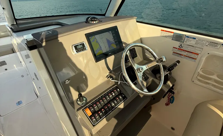 Broker Notes: Commissioned in 2018, this vessel has been winter-stored since new! Her striking Aristo Blue hull sides are sure to turn heads wherever you go. Whether you're entertaining guests or heading offshore for serious fishing, this boat offers a versatile and reliable platform for all your on-the-water adventures.