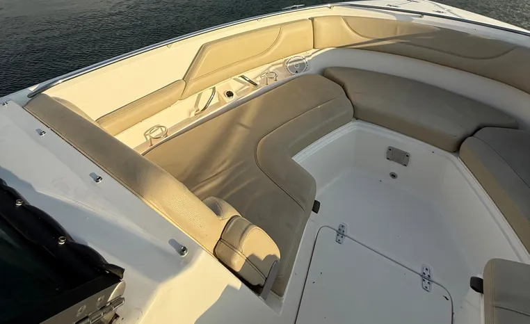 Freshwater / Great Lakes boat since new this vessel features twin Yamaha 300-hp Outboards with only 696-hours. Notable features include but are not limited to the following: Enclosed Head (Vacuflush) w/Vanity/Sink, Cabin w/ Lounging Area, Bow-Thruster, Windlass-Anchor w/Forward Pedal-Controls, Cockpit Wet Bar w/Sink/Drawer-Style Refrigerator/Kenyon Electric BBQ-Grill, Power Retractable Sunshade, Transom Live-Well, Complete Garmin NAV (12" MFD), Fusion Premium Sound-System, Inverter, Triple Axle Continental Aluminum I-Beam Trailer, and MUCH more!