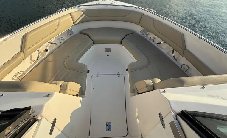 Freshwater / Great Lakes boat since new this vessel features twin Yamaha 300-hp Outboards with only 696-hours. Notable features include but are not limited to the following: Enclosed Head (Vacuflush) w/Vanity/Sink, Cabin w/ Lounging Area, Bow-Thruster, Windlass-Anchor w/Forward Pedal-Controls, Cockpit Wet Bar w/Sink/Drawer-Style Refrigerator/Kenyon Electric BBQ-Grill, Power Retractable Sunshade, Transom Live-Well, Complete Garmin NAV (12" MFD), Fusion Premium Sound-System, Inverter, Triple Axle Continental Aluminum I-Beam Trailer, and MUCH more!