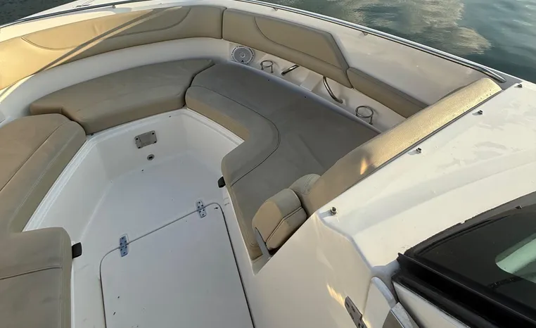 Freshwater / Great Lakes boat since new this vessel features twin Yamaha 300-hp Outboards with only 696-hours. Notable features include but are not limited to the following: Enclosed Head (Vacuflush) w/Vanity/Sink, Cabin w/ Lounging Area, Bow-Thruster, Windlass-Anchor w/Forward Pedal-Controls, Cockpit Wet Bar w/Sink/Drawer-Style Refrigerator/Kenyon Electric BBQ-Grill, Power Retractable Sunshade, Transom Live-Well, Complete Garmin NAV (12" MFD), Fusion Premium Sound-System, Inverter, Triple Axle Continental Aluminum I-Beam Trailer, and MUCH more!