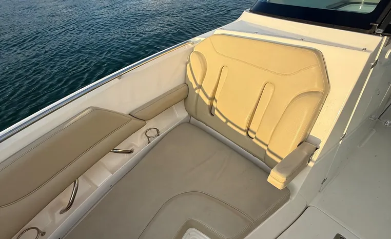 Freshwater / Great Lakes boat since new this vessel features twin Yamaha 300-hp Outboards with only 696-hours. Notable features include but are not limited to the following: Enclosed Head (Vacuflush) w/Vanity/Sink, Cabin w/ Lounging Area, Bow-Thruster, Windlass-Anchor w/Forward Pedal-Controls, Cockpit Wet Bar w/Sink/Drawer-Style Refrigerator/Kenyon Electric BBQ-Grill, Power Retractable Sunshade, Transom Live-Well, Complete Garmin NAV (12" MFD), Fusion Premium Sound-System, Inverter, Triple Axle Continental Aluminum I-Beam Trailer, and MUCH more!