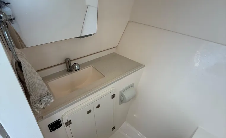 Freshwater / Great Lakes boat since new this vessel features twin Yamaha 300-hp Outboards with only 696-hours. Notable features include but are not limited to the following: Enclosed Head (Vacuflush) w/Vanity/Sink, Cabin w/ Lounging Area, Bow-Thruster, Windlass-Anchor w/Forward Pedal-Controls, Cockpit Wet Bar w/Sink/Drawer-Style Refrigerator/Kenyon Electric BBQ-Grill, Power Retractable Sunshade, Transom Live-Well, Complete Garmin NAV (12" MFD), Fusion Premium Sound-System, Inverter, Triple Axle Continental Aluminum I-Beam Trailer, and MUCH more!