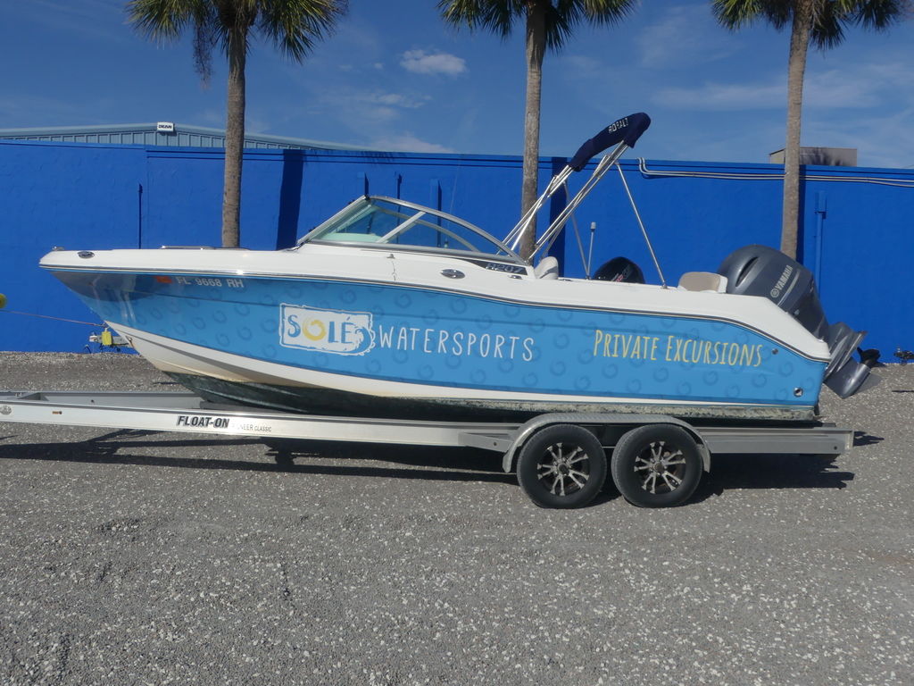 The amazing R207 invites you to double your pleasure and double your fun on boat that showcases everything that's right about owning a dual console outboard. Equal parts fishing machine and multi-purpose family sport boat, the R207 with F115 Yamaha power might be the best value in Robalo's 2014 fleet. An aluminum tandem axle trailer is included in the No Haggle, Reel Deal price. In the cockpit, a lockable head compartment provides welcome privacy. Add an optional porta-pottie because overboard isn't always an option. On the water, an 18-degree variable deadrise Hydro Lift bottom is stable while trolling, balanced under shifting weight loads and efficient going back-and-forth from your favorite fishing spot. A ski tow bar is a must have option for wakeboarding and pulling tubes.