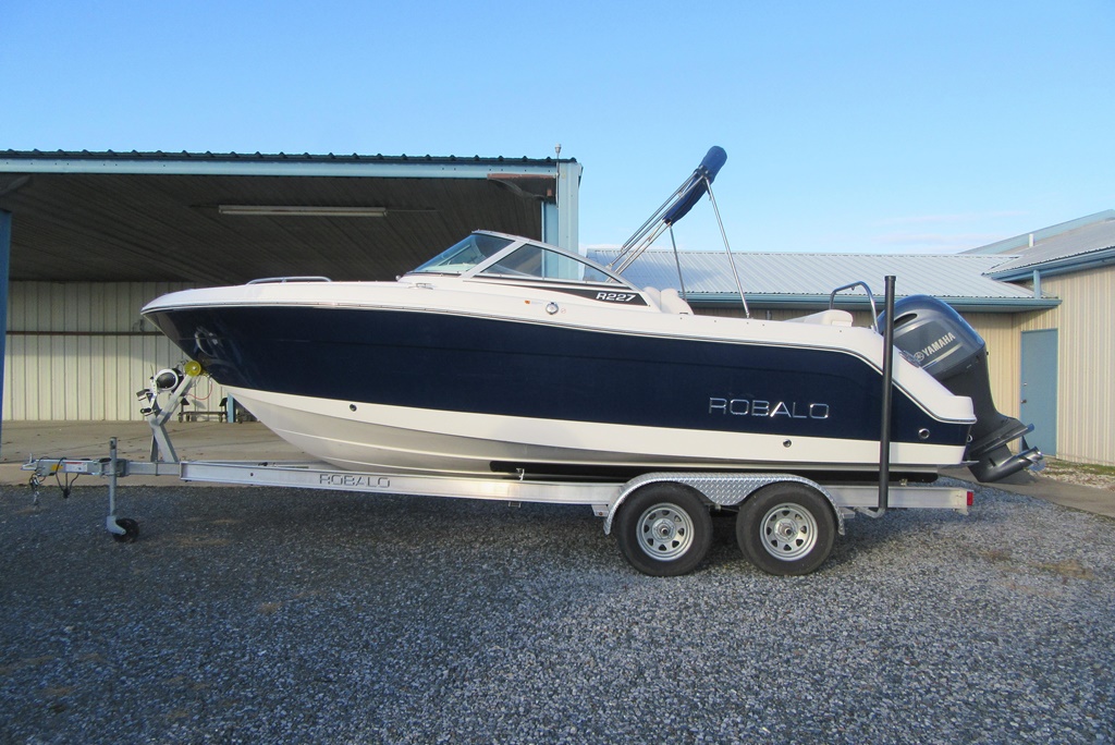 Deepwater Blue Hull Color, blue bimini top w/ boot and front windscreen, blue bow and cockpit covers, Garmin 741XS DF/GPS, Ski Tow Bar, SST pull up cleats, SST prop, no bottom paint, professionally maintained, stored inside since new