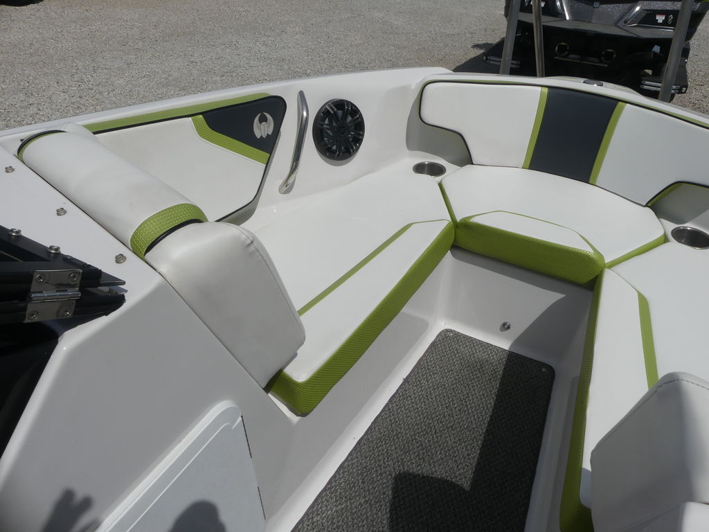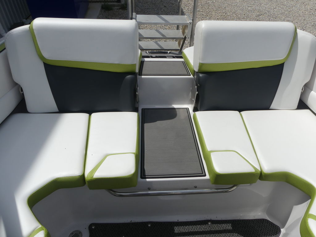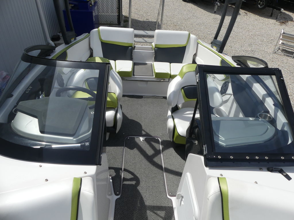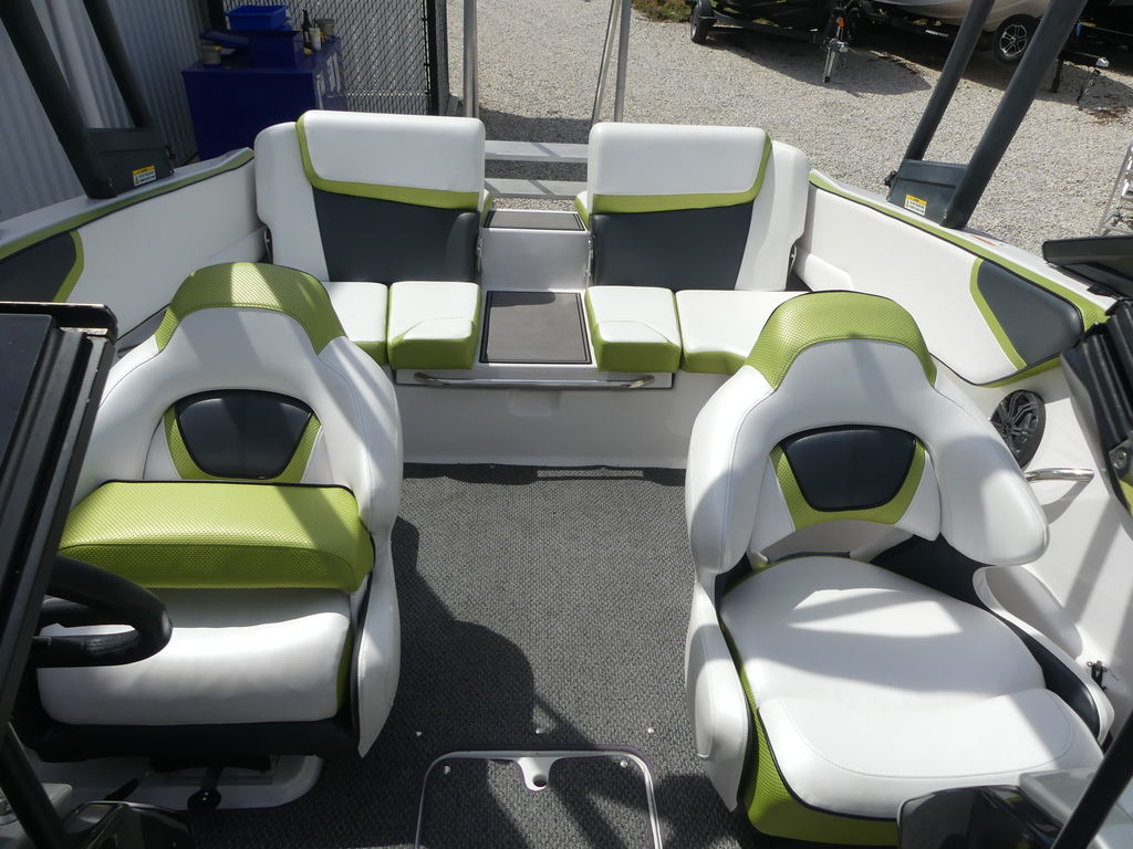 The Impulse package takes things further with a wakeboard tower, integrated bimini top, and tower speakers—making it fully equipped for a day of watersports or cruising in style. Built on a durable fiberglass hull with a deep-V design, this boat delivers a smooth, stable ride even in choppier conditions.