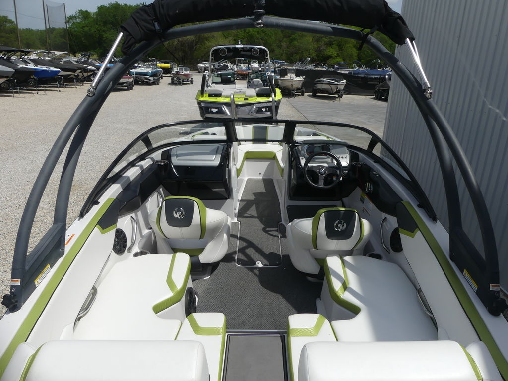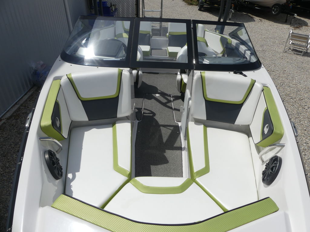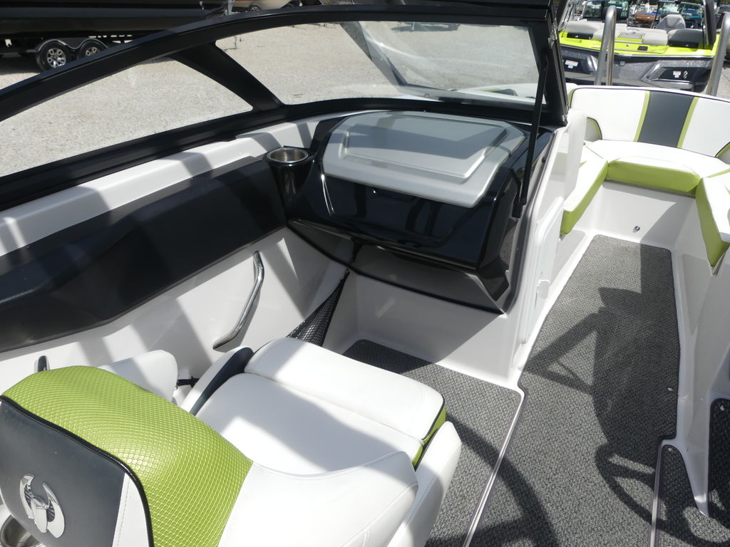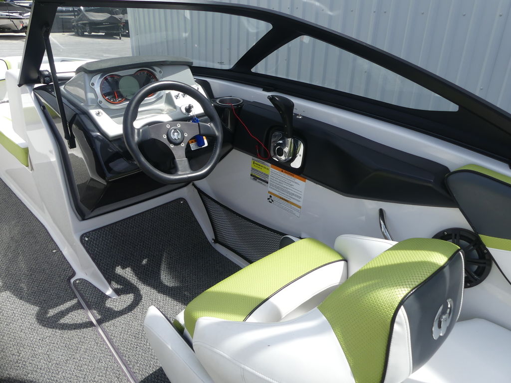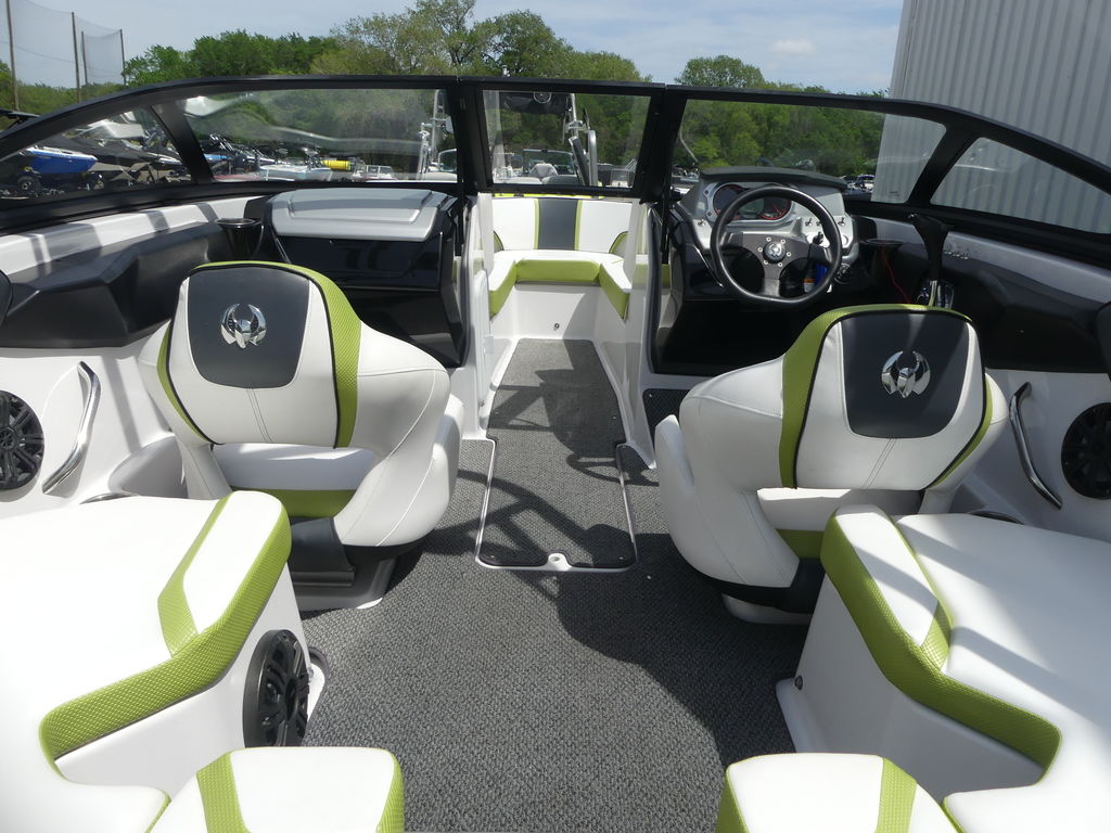 The Impulse package takes things further with a wakeboard tower, integrated bimini top, and tower speakers—making it fully equipped for a day of watersports or cruising in style. Built on a durable fiberglass hull with a deep-V design, this boat delivers a smooth, stable ride even in choppier conditions.