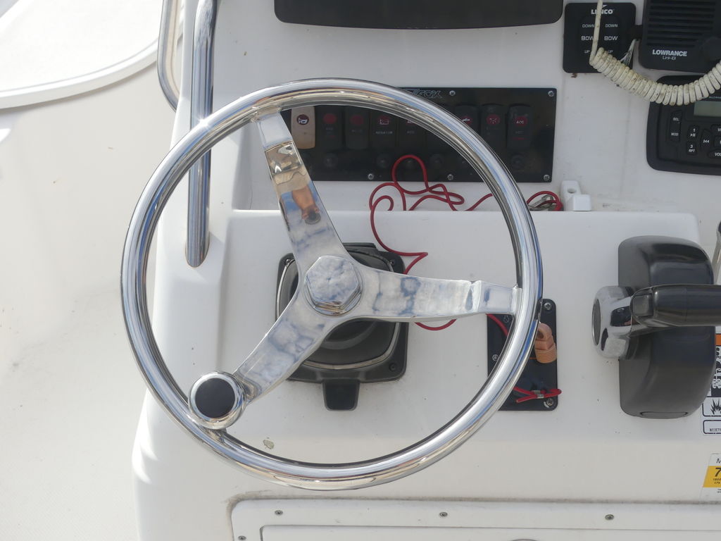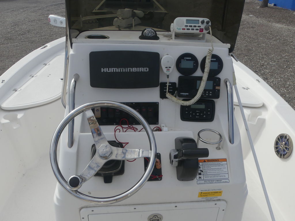 This is a New 2016 Sea Fox 200 Viper Bay with a Yamaha F115XA 4 Stroke 25", mechanical controls & analog guages. Leaning post w/backrest/cooler. Swim platform w/ladder. Bahama Blue Hull Color