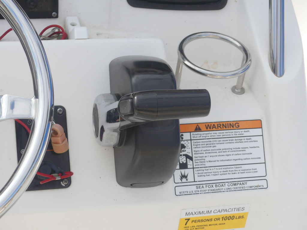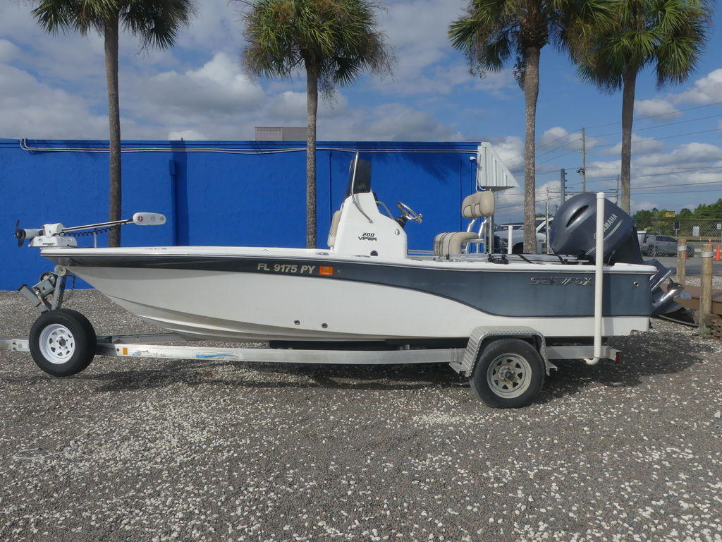 This is a New 2016 Sea Fox 200 Viper Bay with a Yamaha F115XA 4 Stroke 25", mechanical controls & analog guages. Leaning post w/backrest/cooler. Swim platform w/ladder. Bahama Blue Hull Color