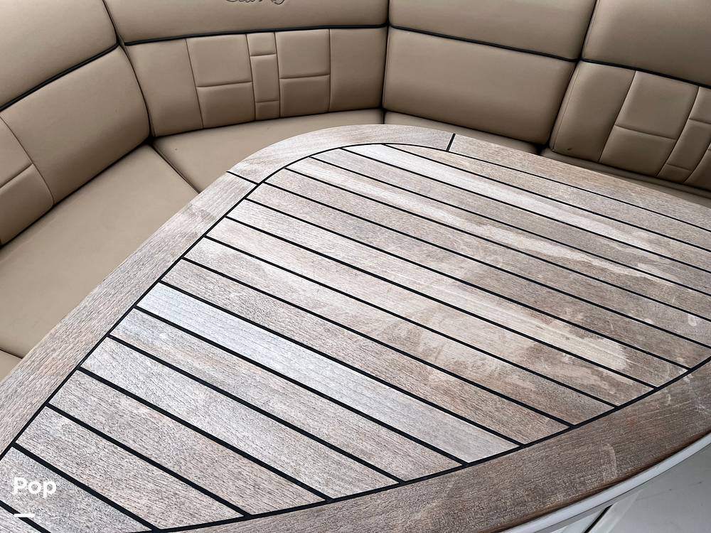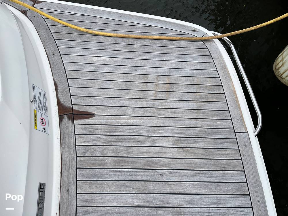 It features a very large swim platform with SeaDek and a swim ladder, which is perfect for hanging out with your feet in the water while you are on the hook. There are also pull-up loungers facing the stern for keeping an eye on the children while they are playing and floating in the water.