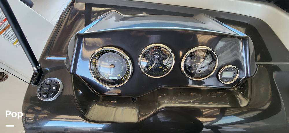 As for the features onboard this 2016 Sea-Ray, you will find a fold-out ladder on the swim platform, a boat cover, a bimini top, and an awesome stereo system!