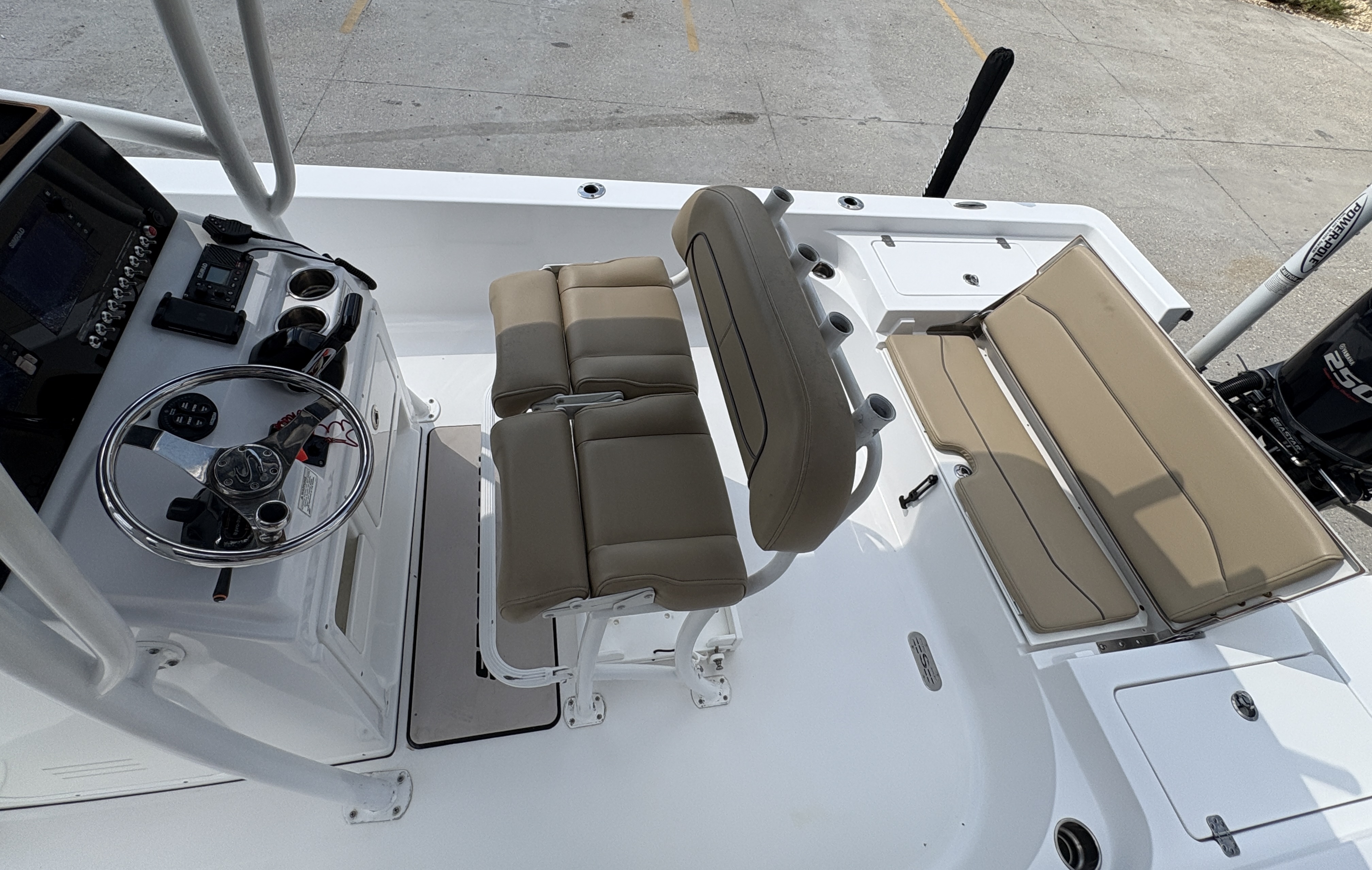 Equipped with a reliable Yamaha outboard, the 247 Platinum delivers strong, efficient power and smooth handling. The layout is designed for serious anglers, featuring large casting decks, multiple livewells, rod storage, and plenty of fish boxes. For comfort, you’ll find plush forward seating, a spacious console, and a deluxe leaning post with tackle storage.