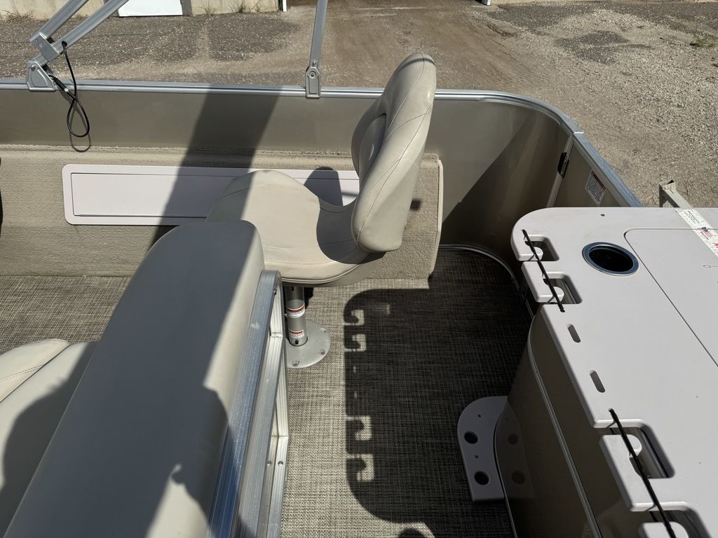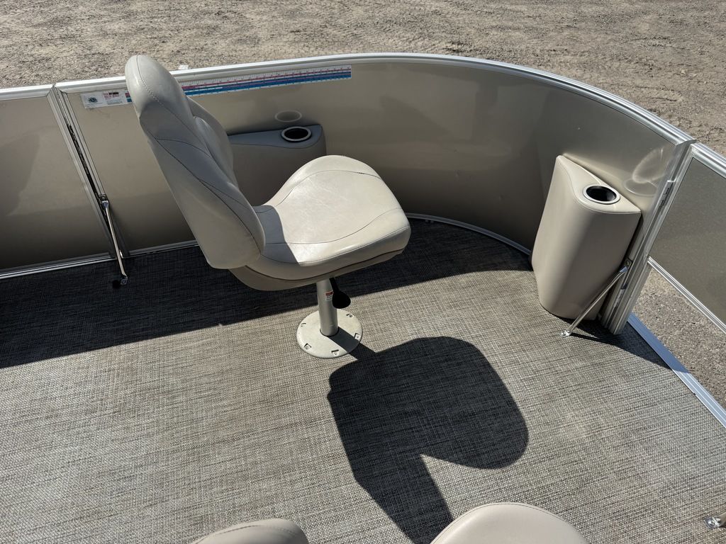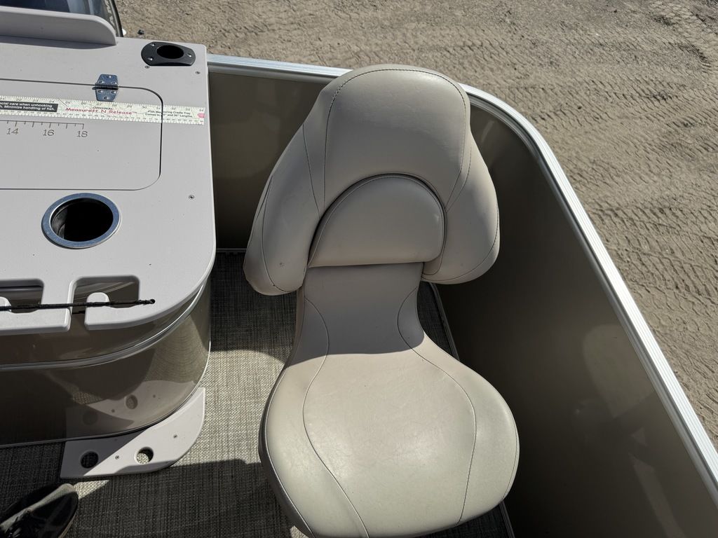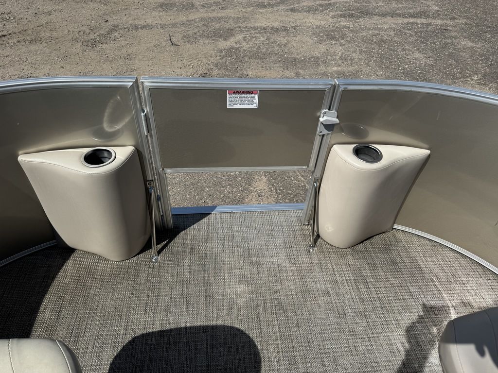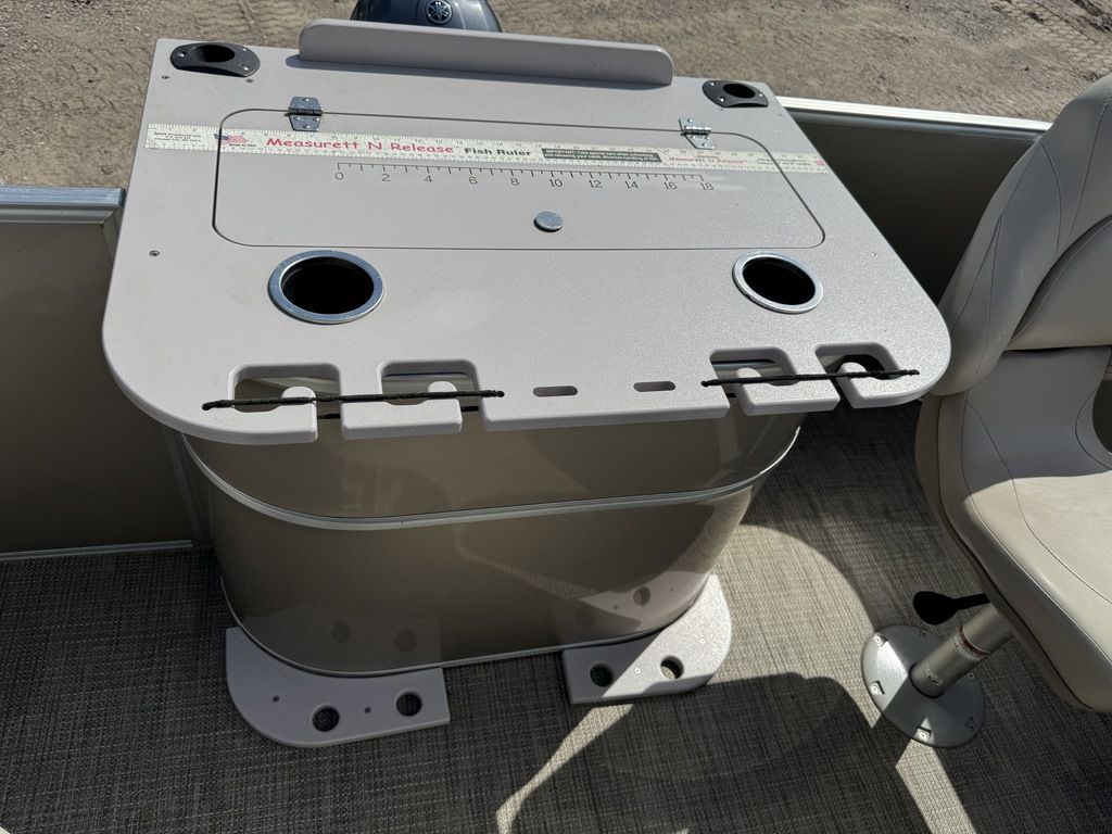 This 4 corner fishing model pontoon features a full vinyl floor, 4 fold down