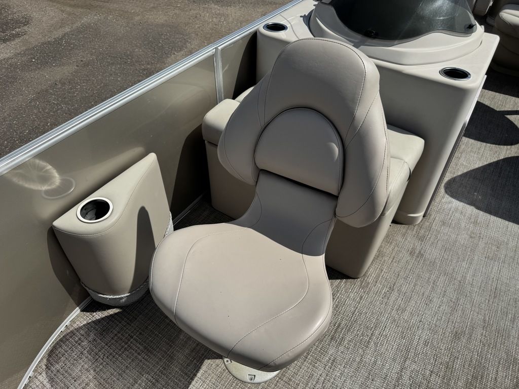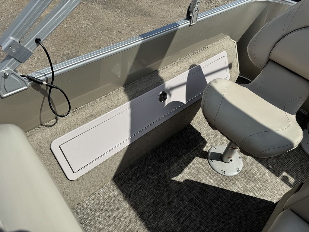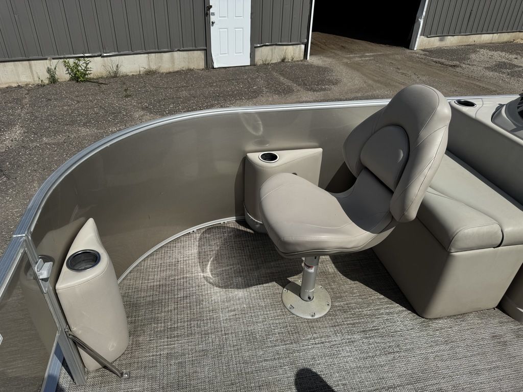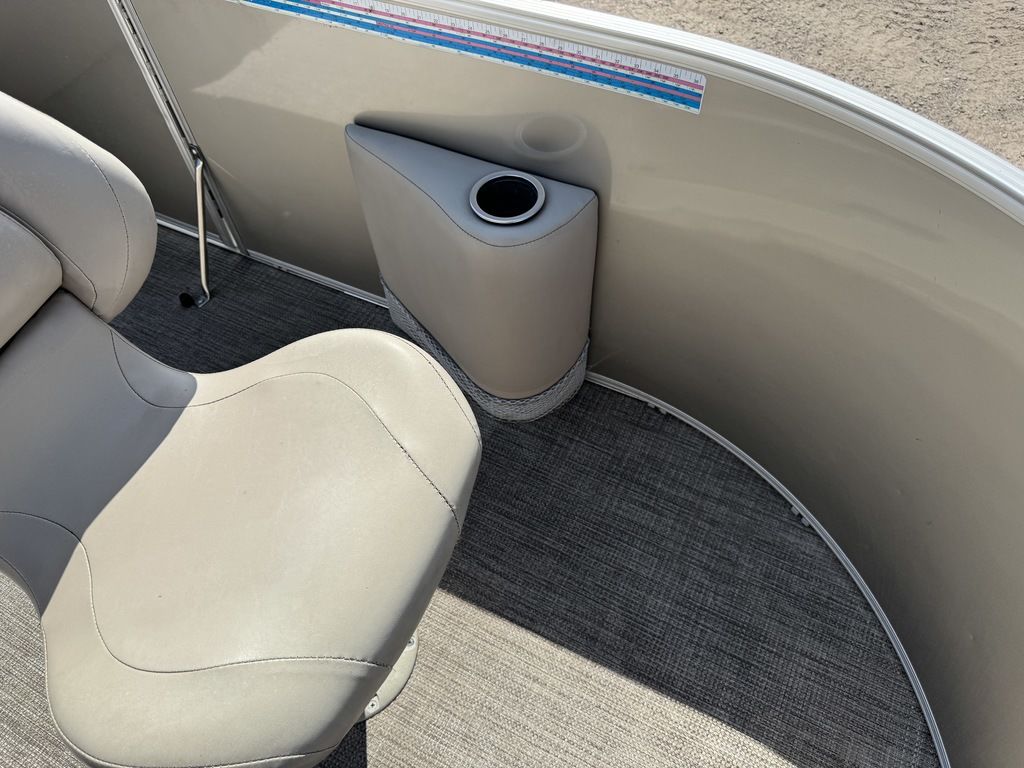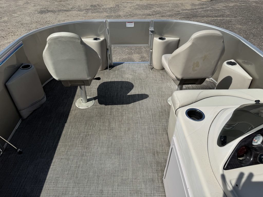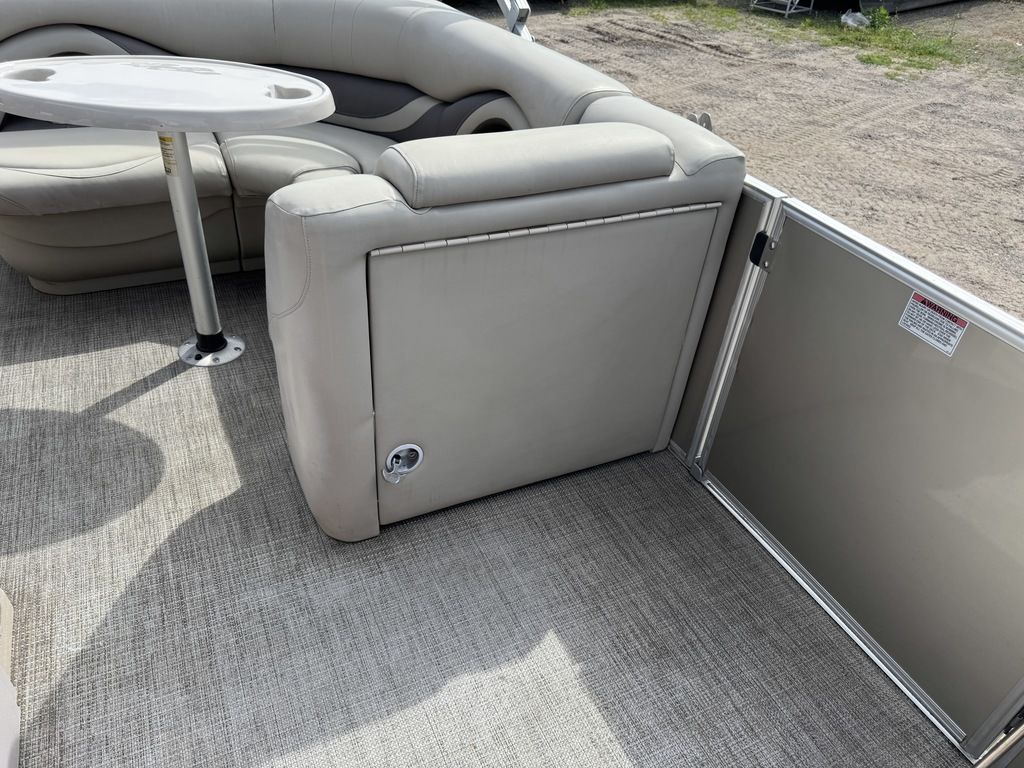 This 4 corner fishing model pontoon features a full vinyl floor, 4 fold down