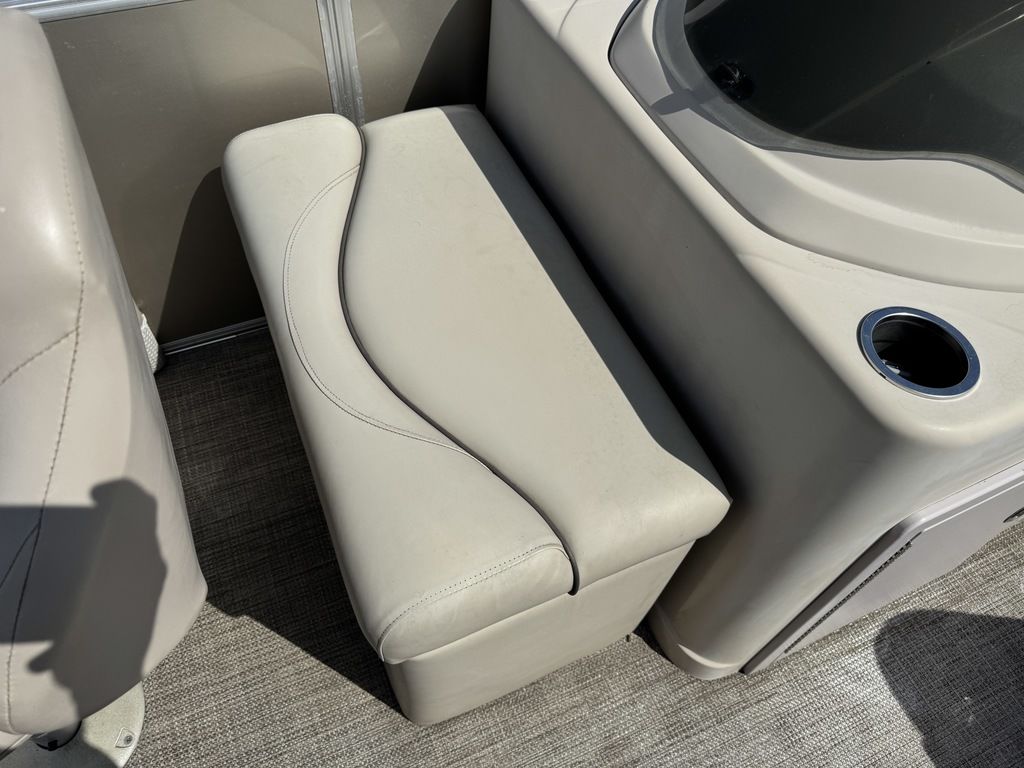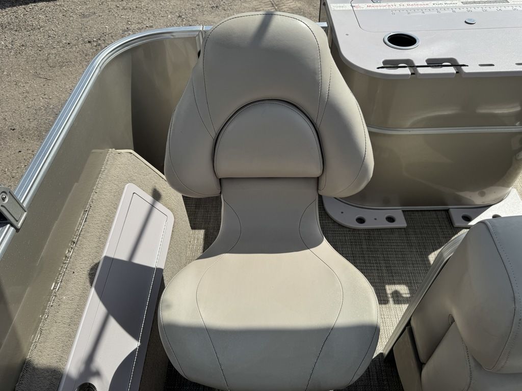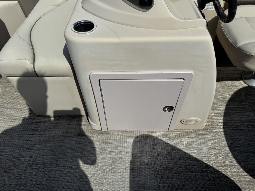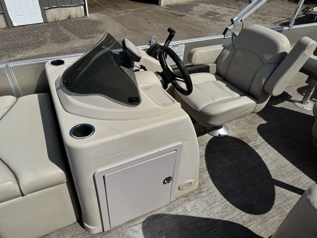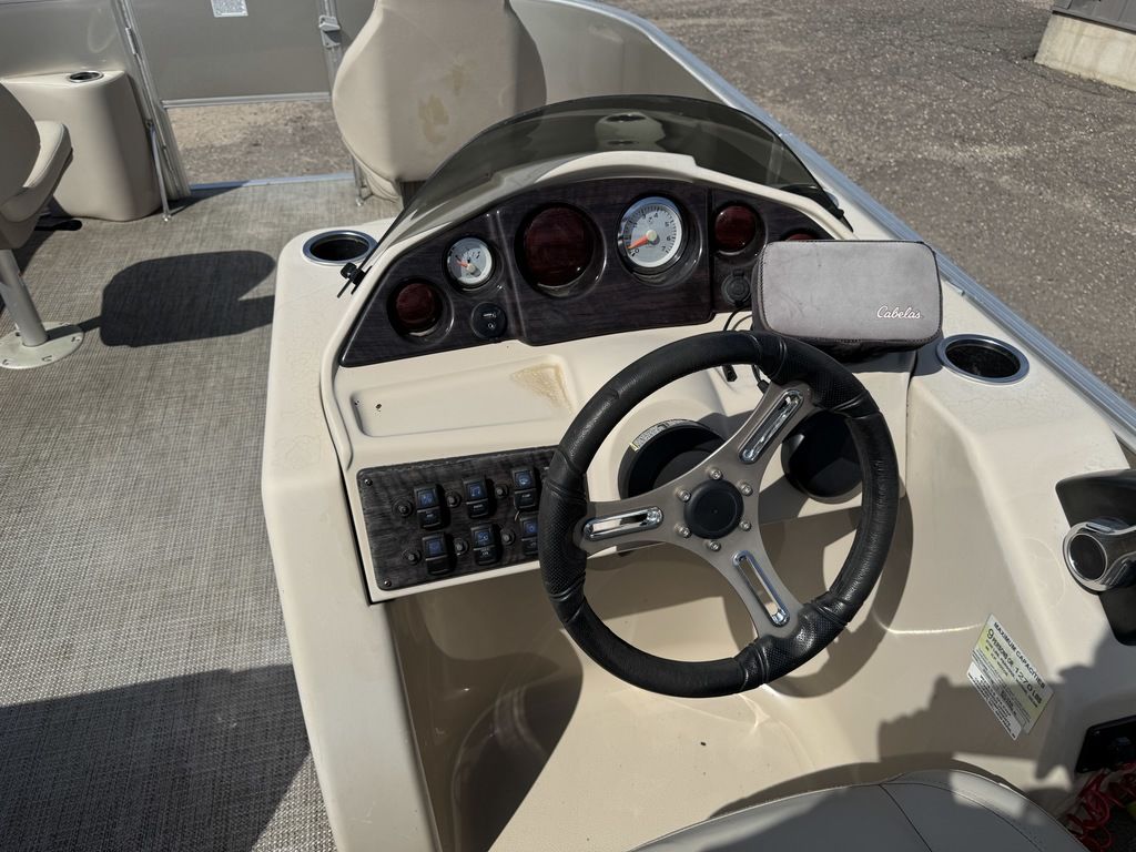 This 4 corner fishing model pontoon features a full vinyl floor, 4 fold down