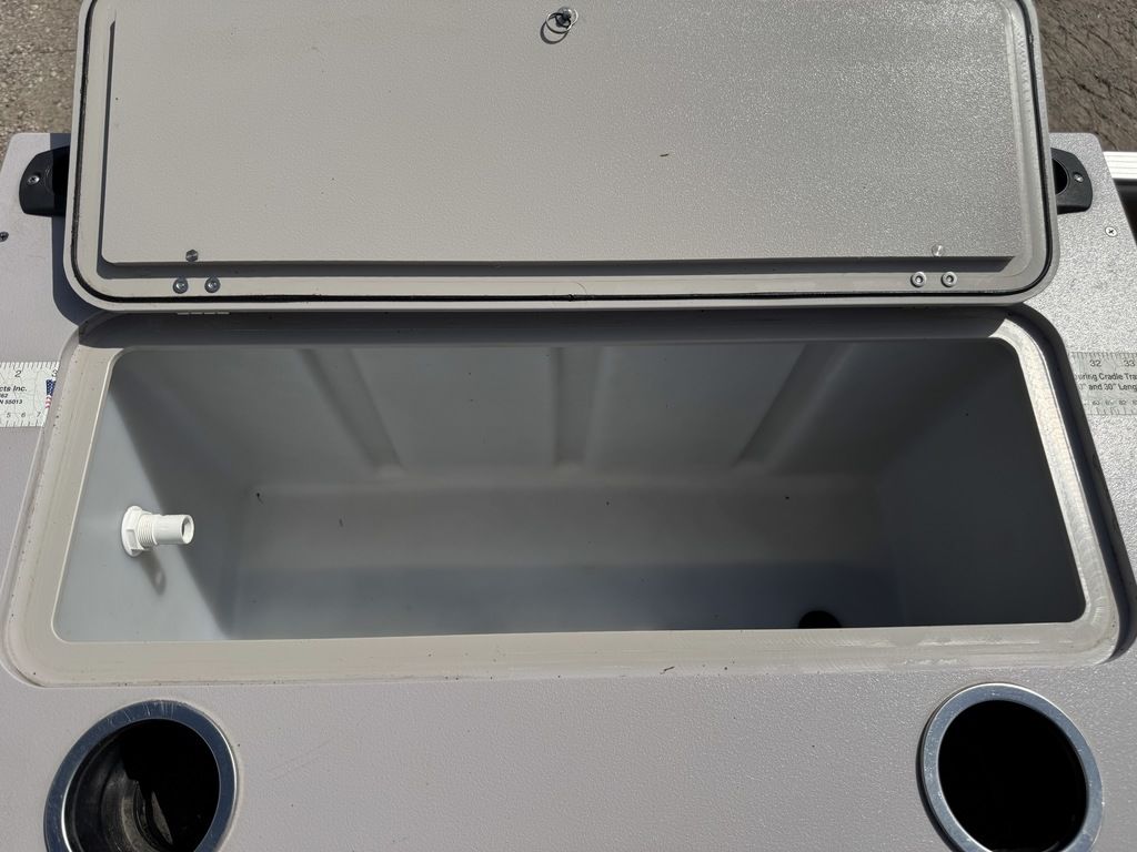 fishing seats, a L-couch, table, sport captain's chair, 2 livewells,