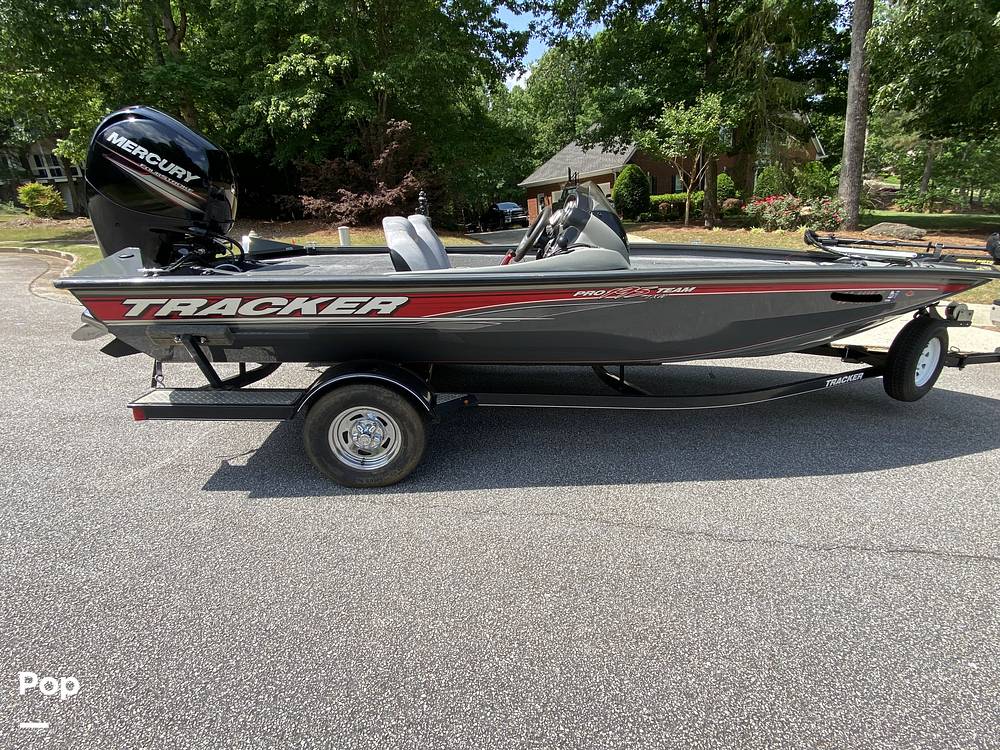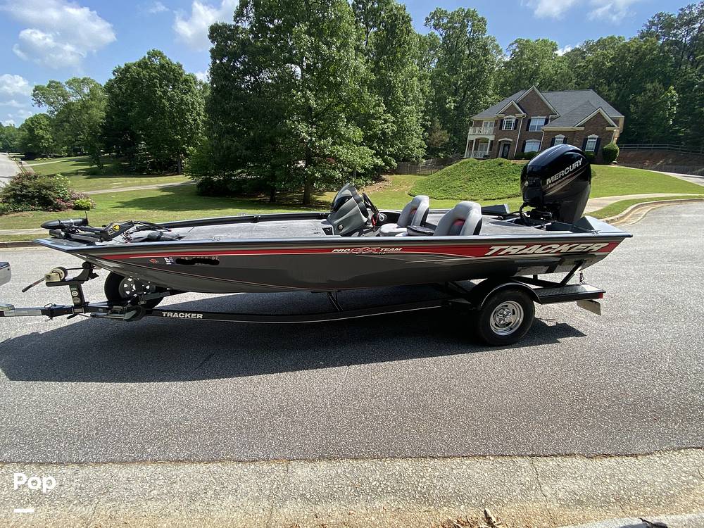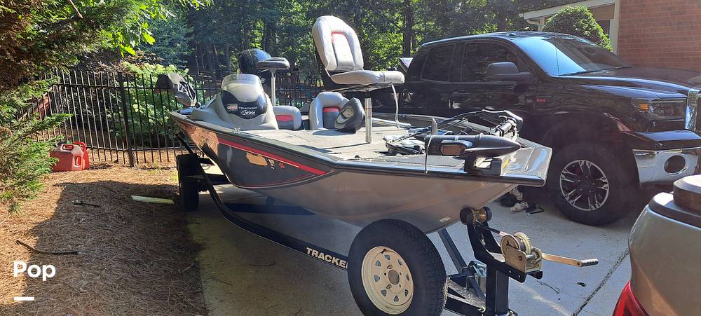 This 2016 Tracker Pro Team 195TXW with its 2016 Tracker trailer is in good condition for its age. The trailer has a spare tire and wheel.