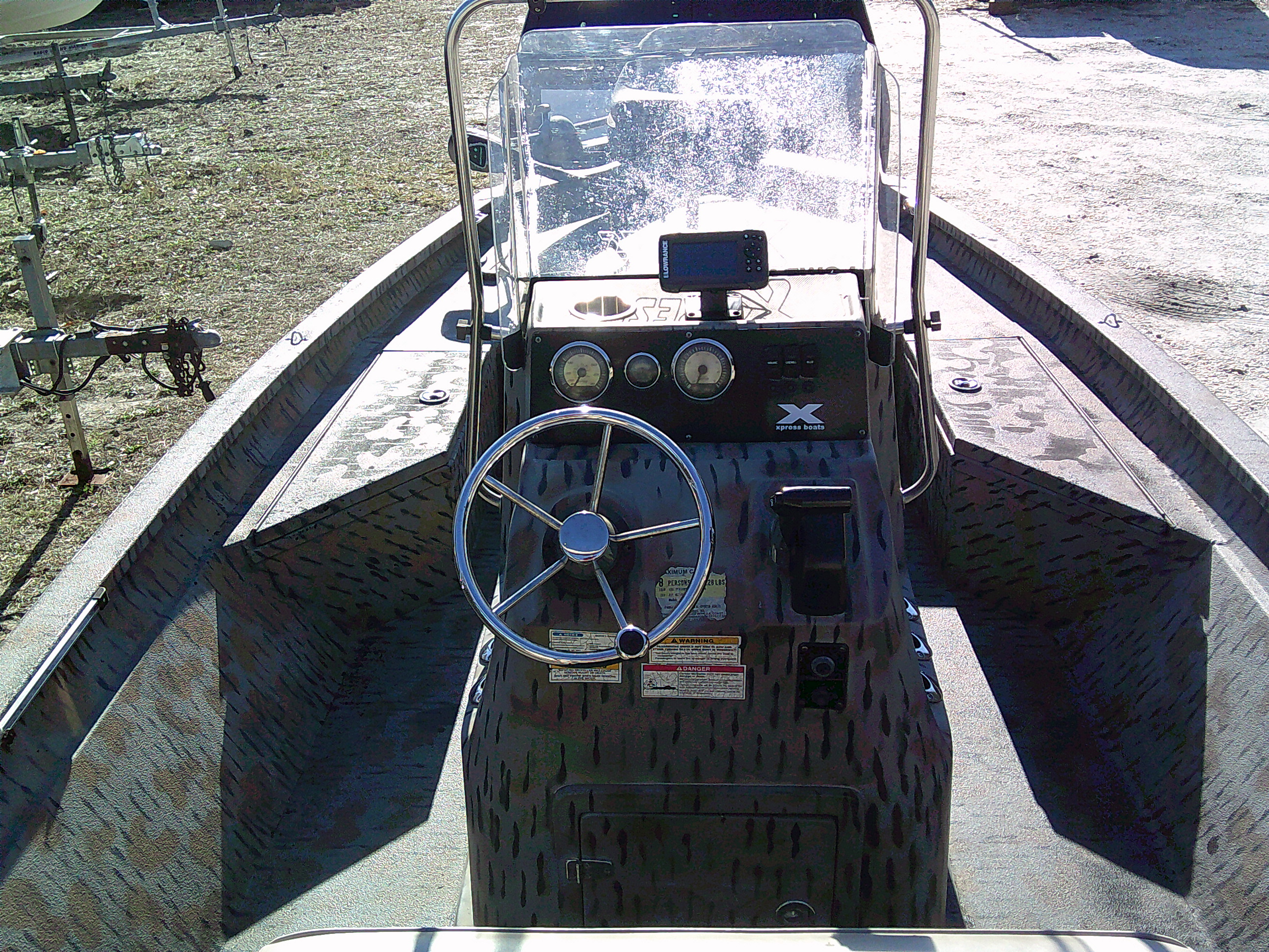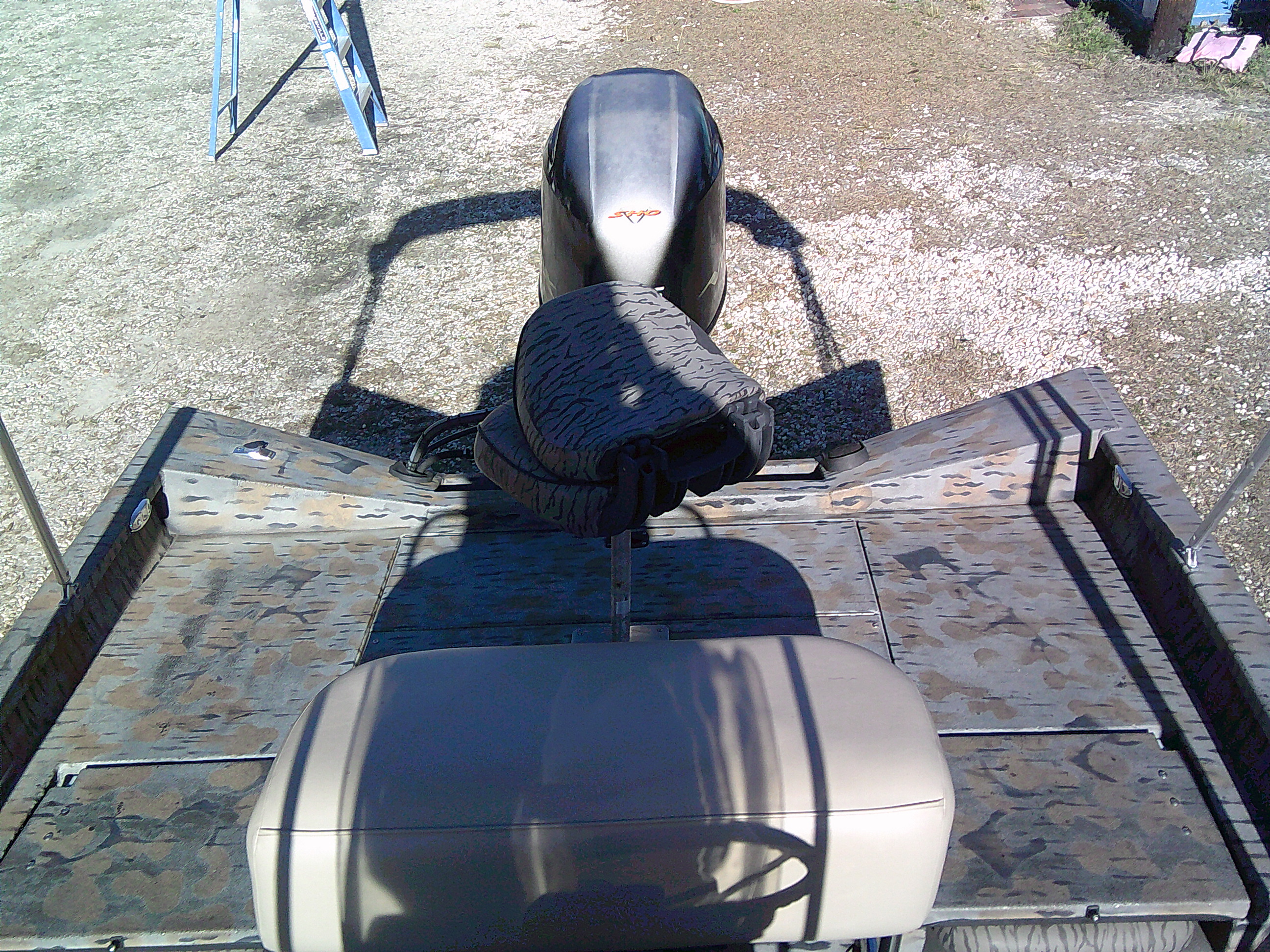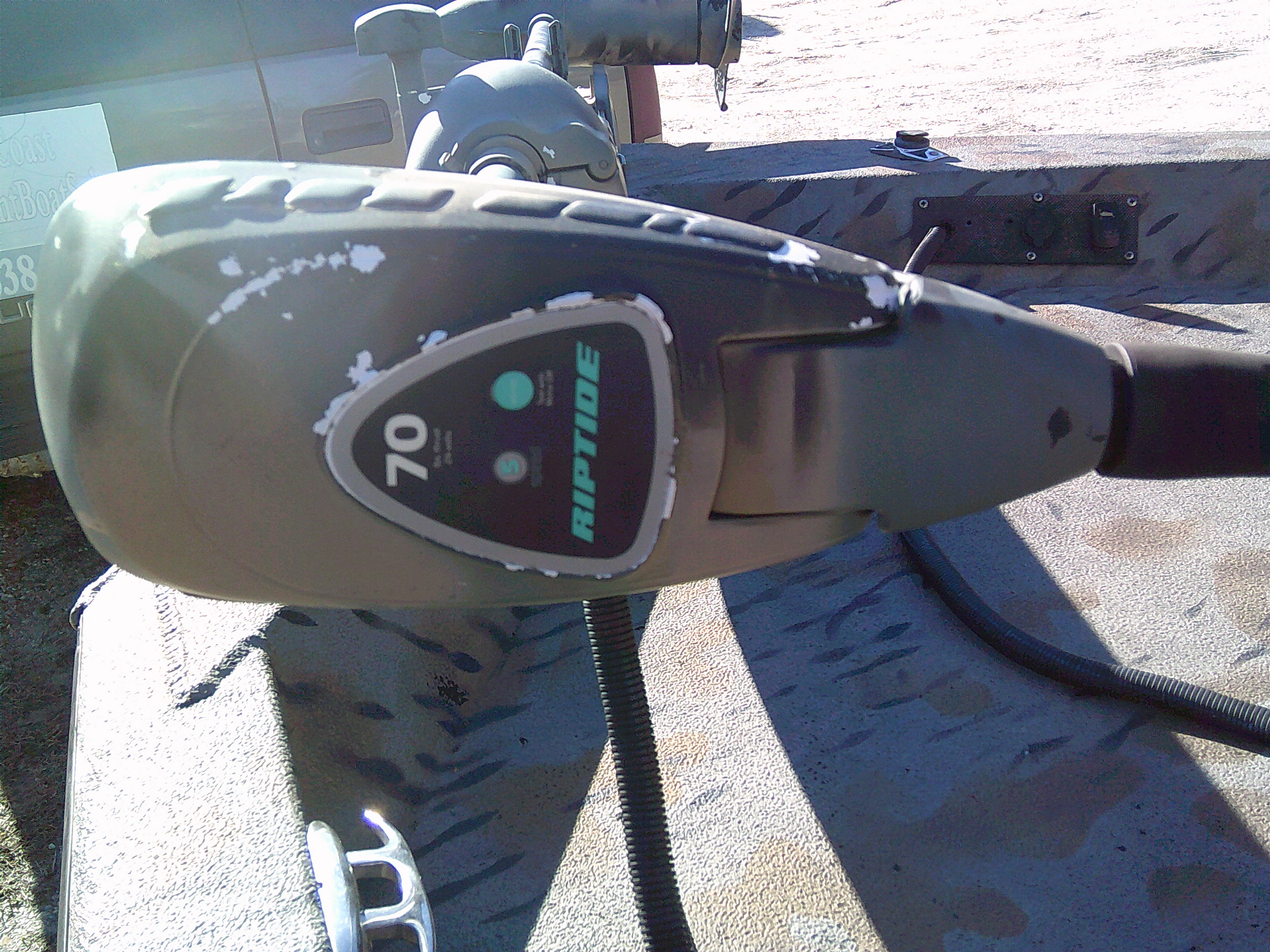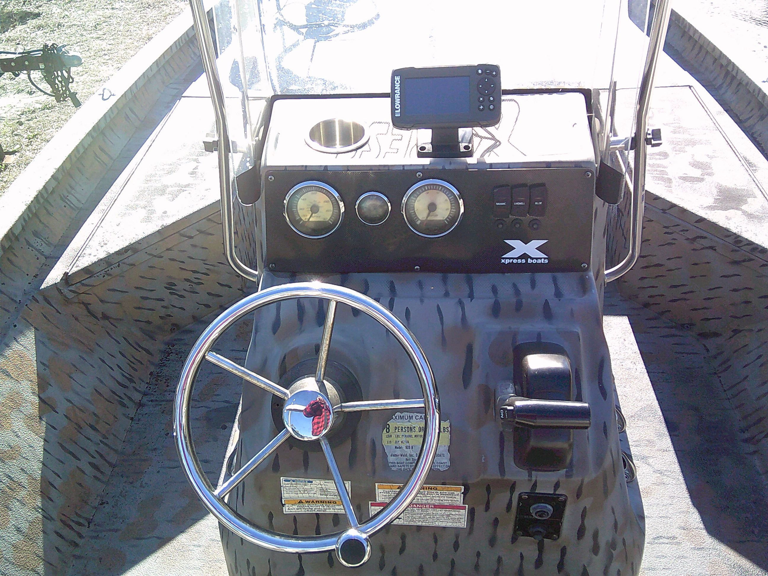 Vessel Info: Large Forward Platform, Perfect for Throwing a Cast Net, Fishing or Sunning w/Minn Kota Riptide Trolling Motor, 24 Volt, 70Lbs Thrust, 5 Speed, Tiller / Forward Engine Trim Tilt Switch / Removable Cushioned Fishing Chair / 3 Storage Boxes / Forward of Console Cushioned Seat/Live Well/Cooler w/Back Rest / Console w/Wind Screen, Grab Rails, 6 Side of Console Rod Holders / Gauges, Controls, Switch Panel, Cup Holders, Stainless Steel Helm w/Knob / Cushioned Leaning Post / Self Bailing Deck / Bimini Top w/Cover / Large Aft Platform w/2 Cushioned Jump Seats w/Storage / In Platform Storage / Removable Cushioned Fishing Chair