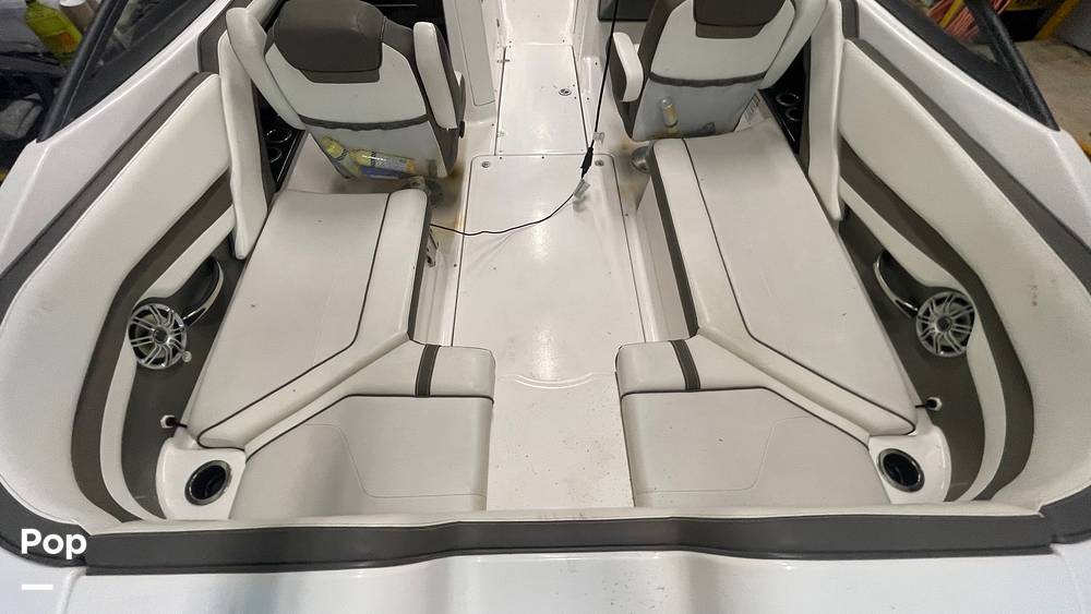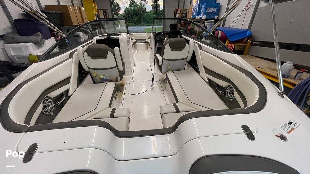 The Limited S package is loaded with premium snap-in carpet, full color-matched Bimini, bow and cockpit covers, the big Connext touchscreen with cruise assist and no-wake mode, thrust-vector fins for effortless slow-speed handling, the huge swim platform with stereo remote and wet storage, bow filler cushion that turns the front into a giant sun pad, dinette table, and storage everywhere you look.