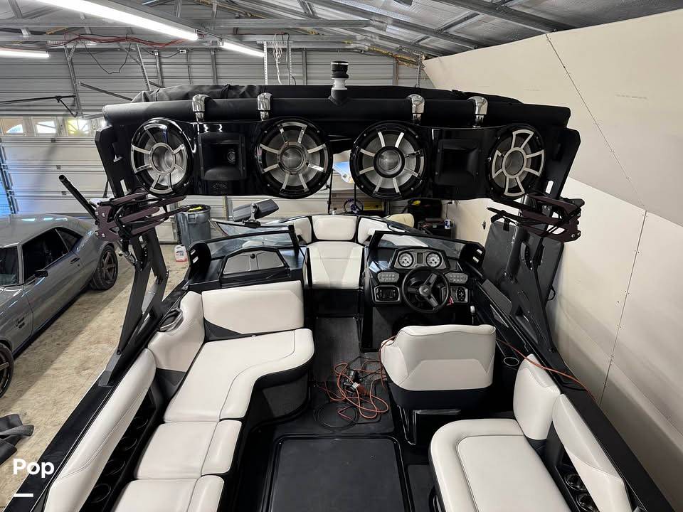 This 2017 Axis T22 is a 22-foot wake and surf boat is known for its classic bow design, large capacity, and customizable wakes. It was built on a Wake Plus hull, and in 2017, it came standard with a Monsoon 409 engine and electronic shift.