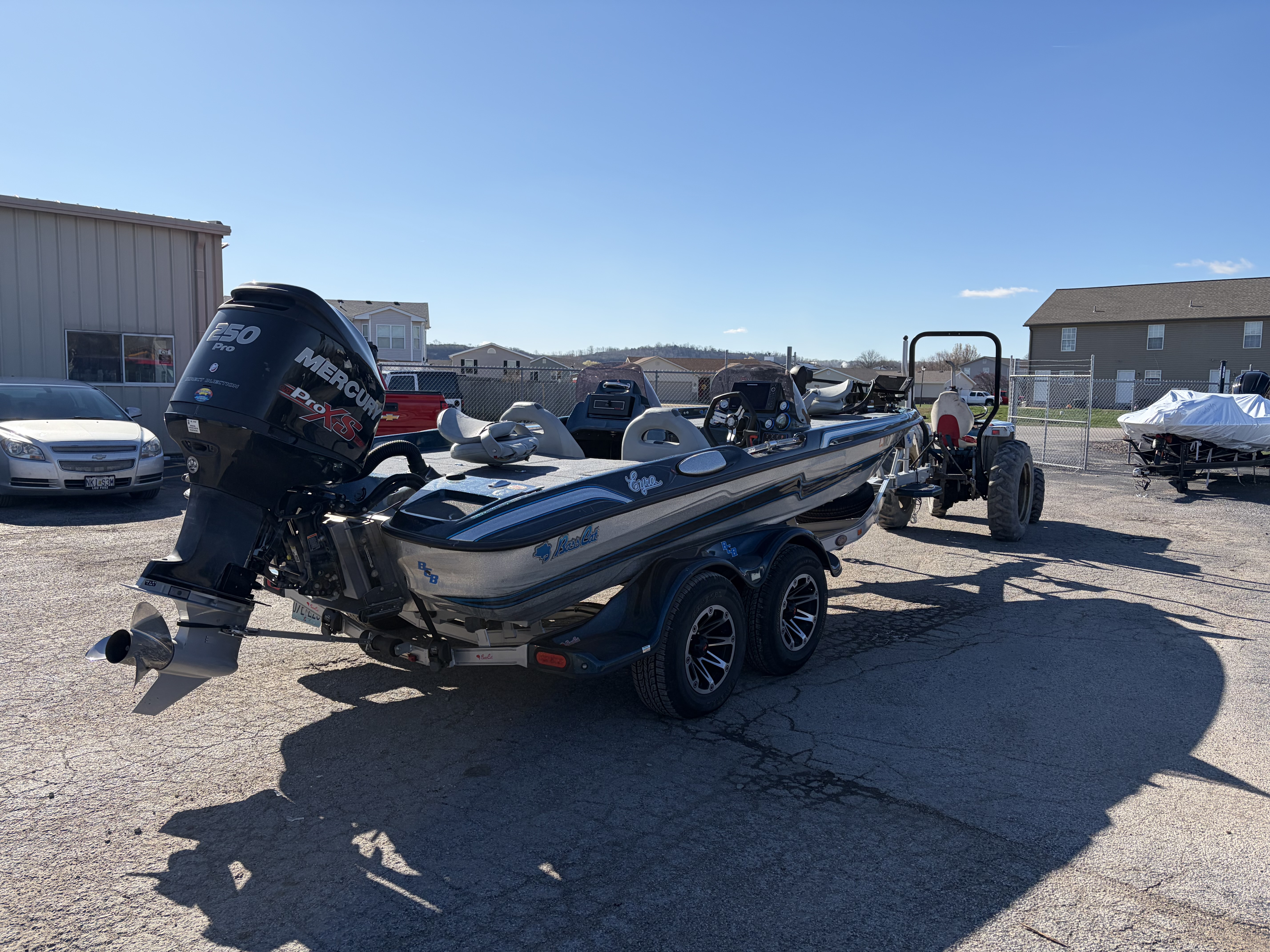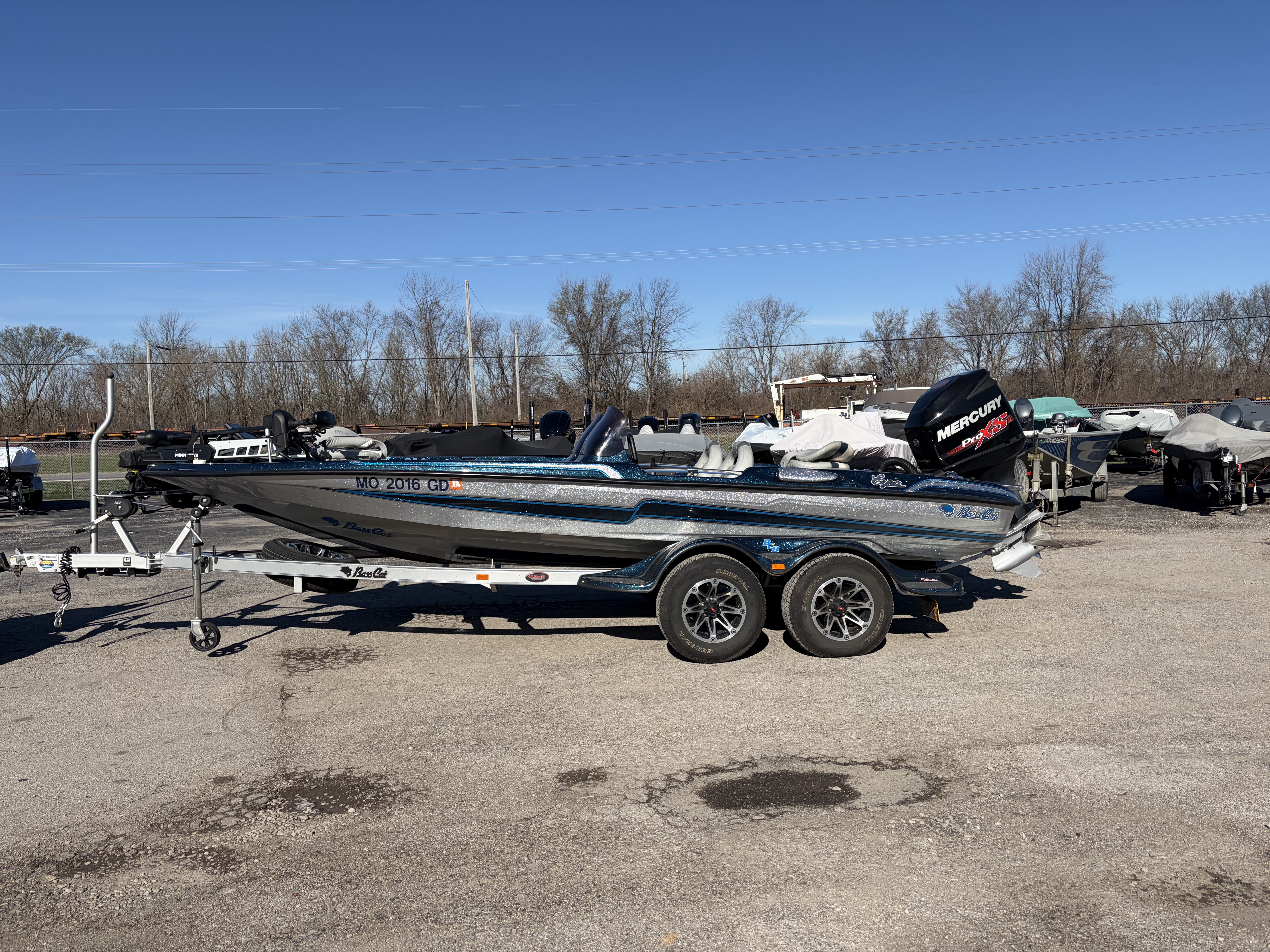 2017 Basscat Eyra Dual Console, with Mercury 250 proxs, 2 helix 10's, Minnkota Ultrex trolling motor, hamby keel protector, pump in and pump out livewells, tilt wheel, custom wheels, tandem axle trailer