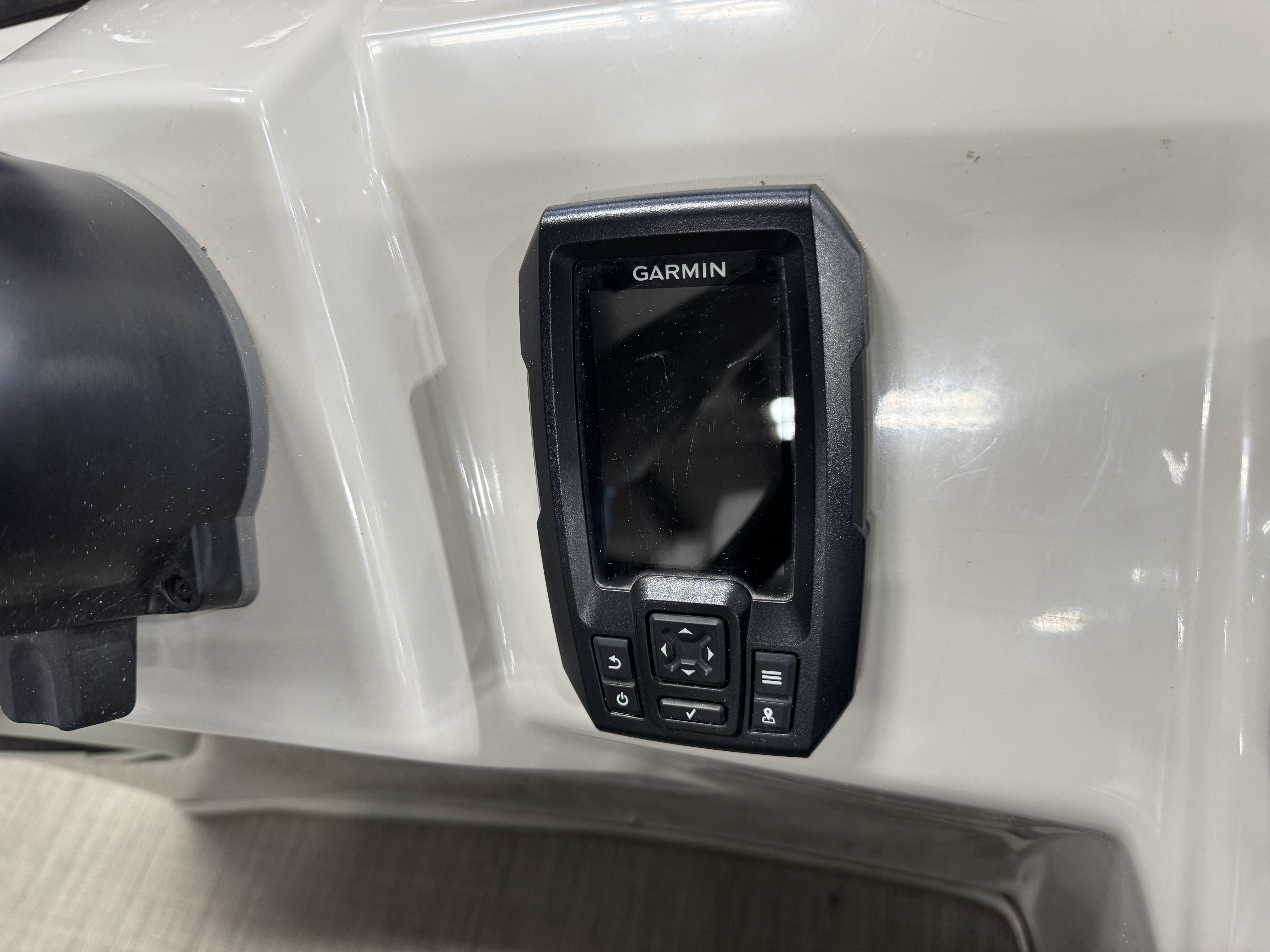 and auxiliary inputs. There is a Garmin GPS depth/fish finder mounted in the