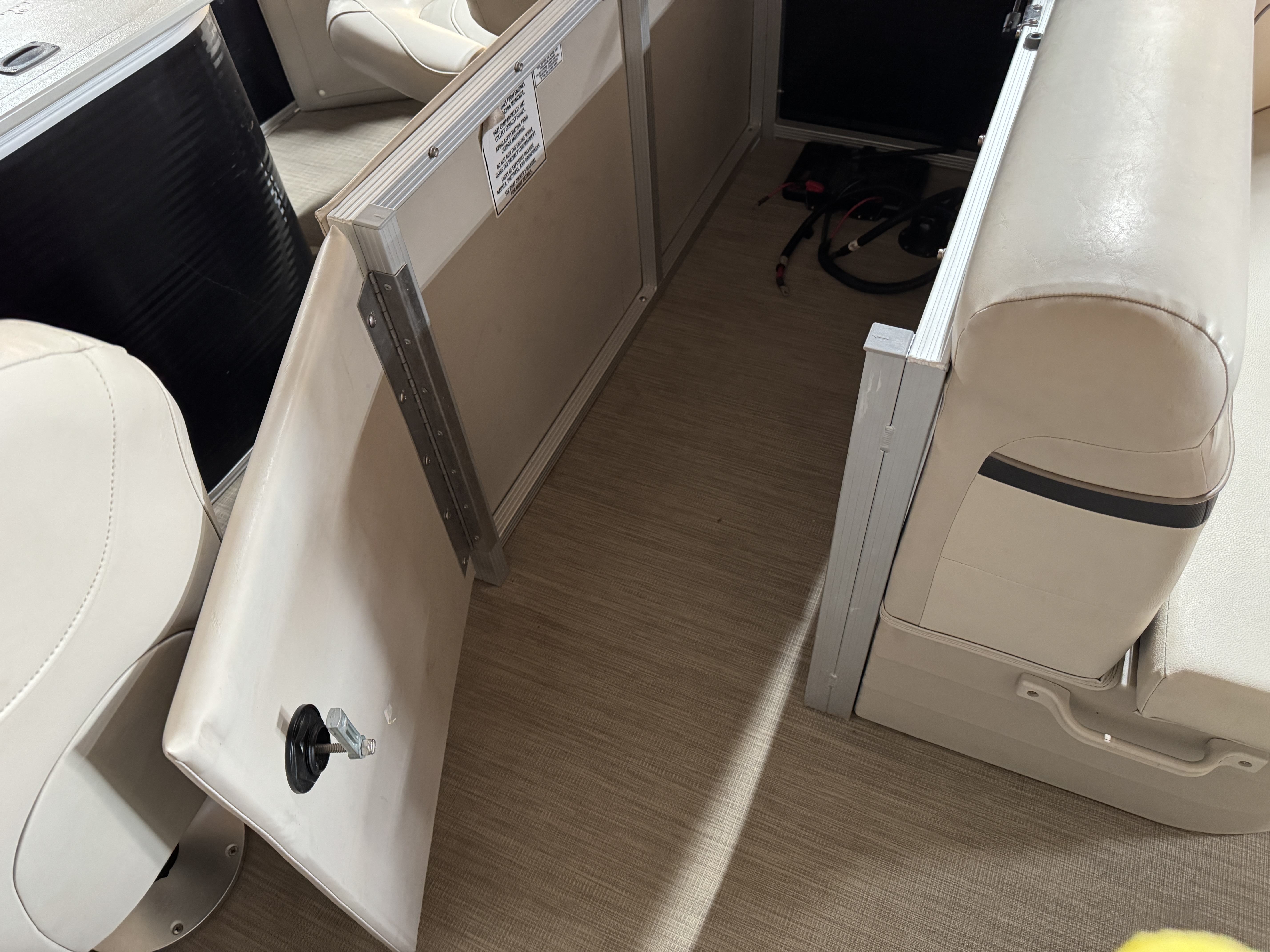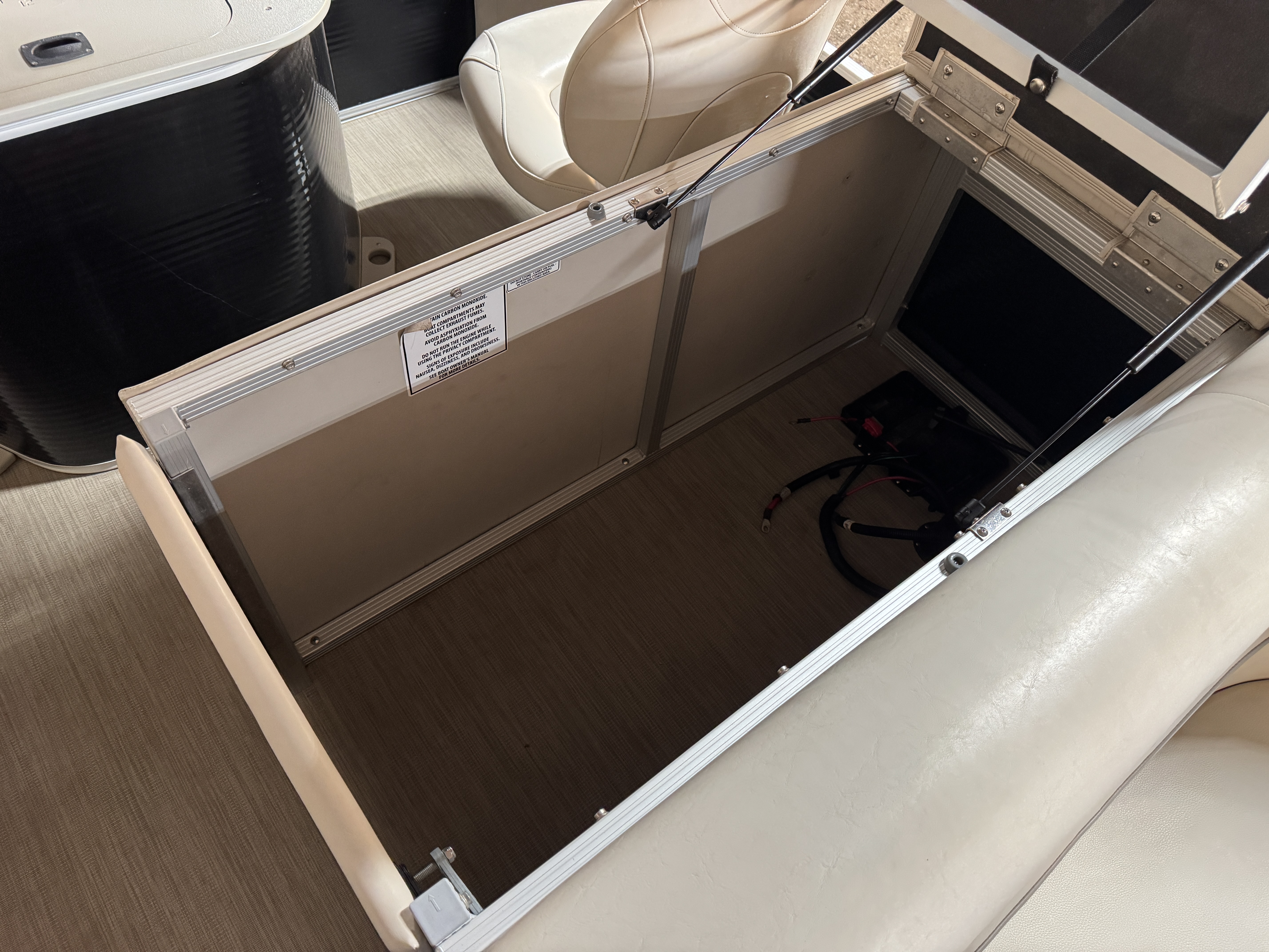 sun deck. The sun deck flips up to reveal a large storage compartment with a