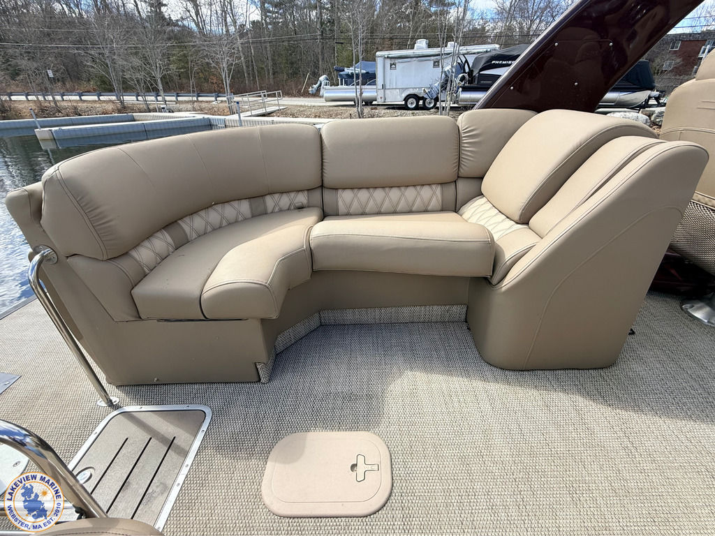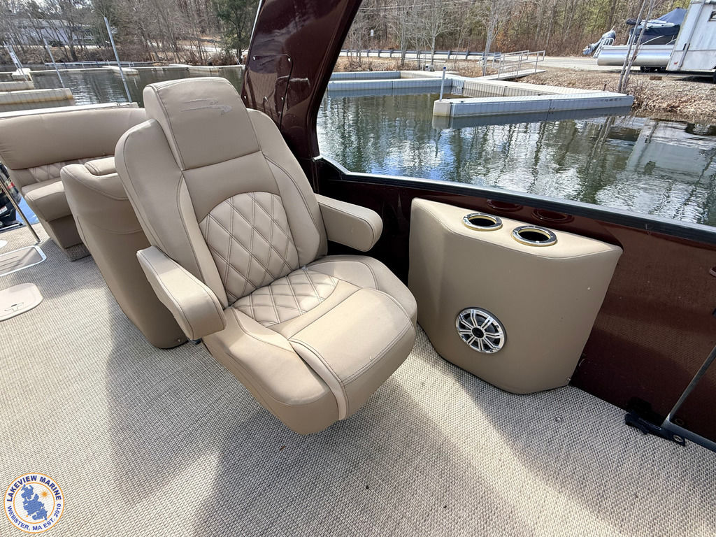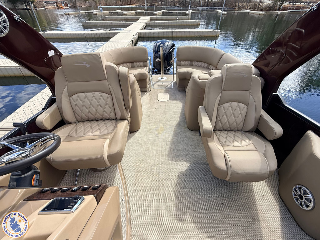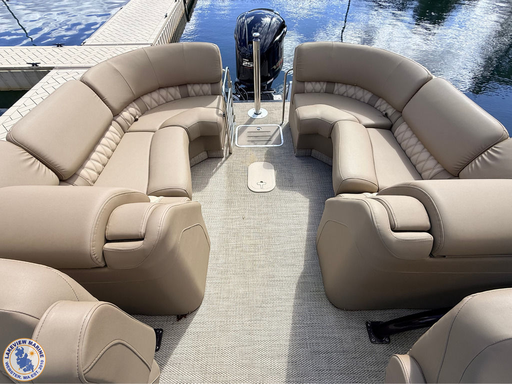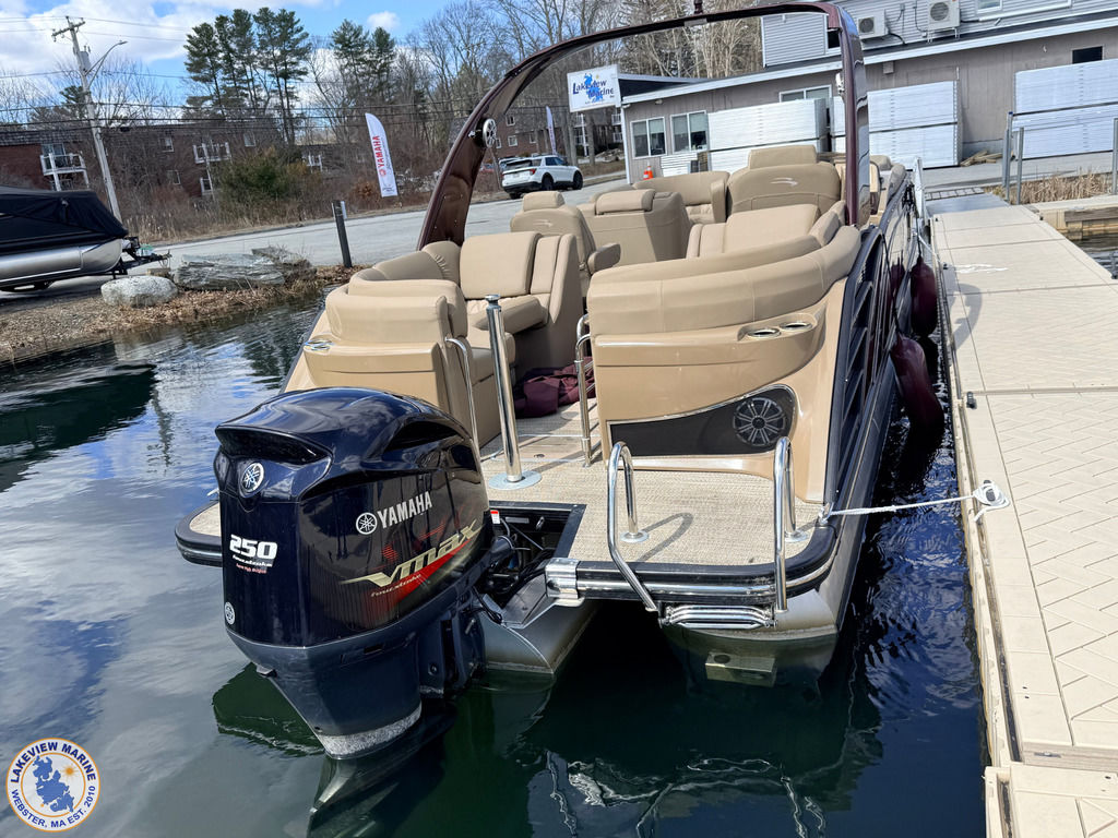 Gorgeous 2017 Bennington QX Fastback powered by the Yamaha 250hp Outboard! This luxury Tritoon is designed for high-performance cruising and watersports! Features include Diamond Stitched Tuscan Dune (tan) Interior Vinyl, a sleek Fast Back Stern, an Electric Arch with a Bimini Top, Dual Captain's Chairs, Refrigerated Cupholders, RGB Underwater Lighting and In-Floor Storage. A Load Rite Tandem Axle Trailer is included in the sale price!