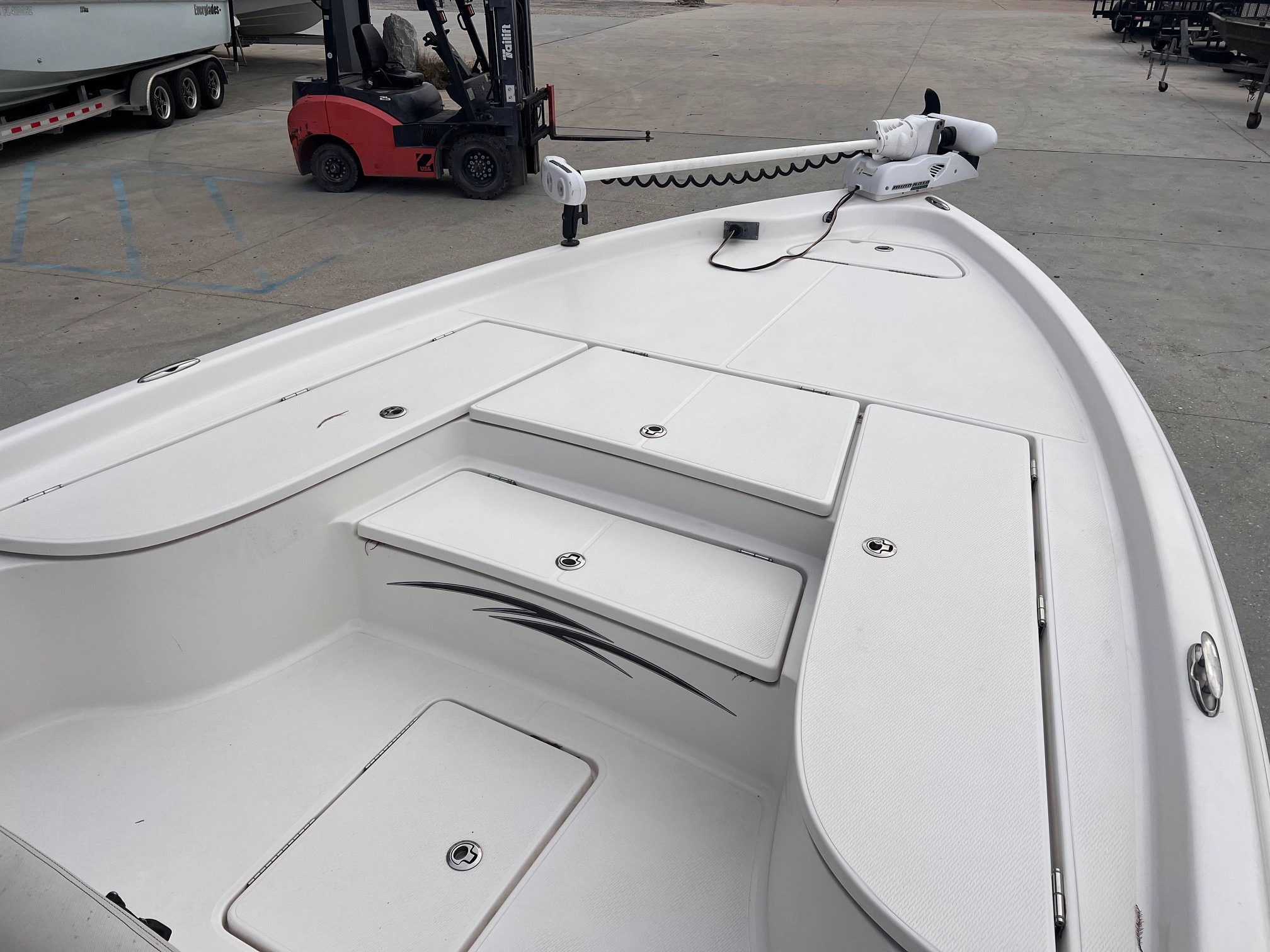 Hull: Fiberglass, hand-laid composite with a transitional pad for shallow water/chop performance