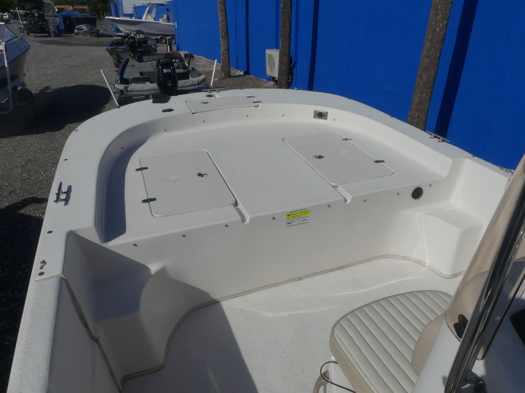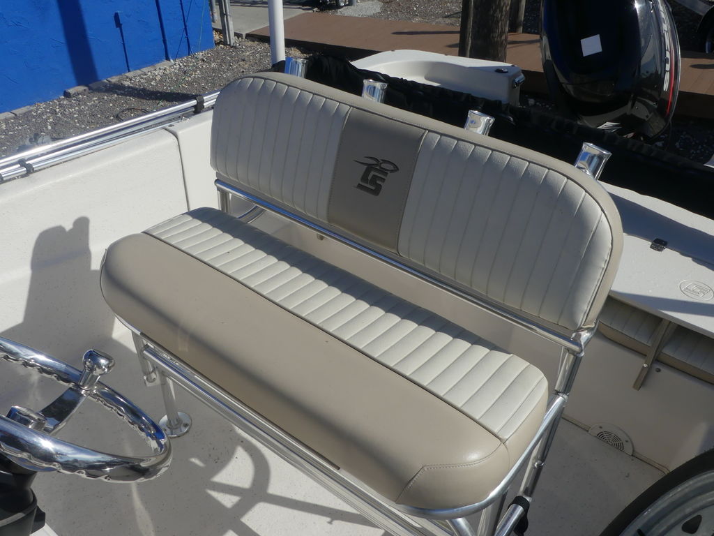 Quality stainless steel components, plentiful storage space, wide open deck space, large front and rear fishing decks, rear cushion jump seats, console with an open face for mounting up to a 10" flush mount electronic screen and 3 stainless steel cup holders, stainless cooler seat frame with adjusting flip flop back rest and your choice of a bimini top or a T-top, give you a great boat for anything from a family excursion to a day of fishing.