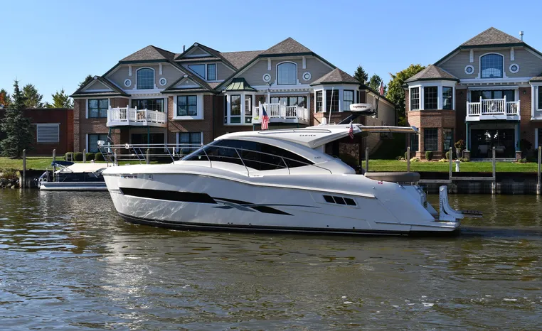 Freshwater / Great Lakes boat since new this vessel features Twin Mercruiser 6.2-litre 350-hp Gas Engines (only 391 original hours) and Mercruiser SeaCore Outdrives! Docking is a Breeze, Thanks to the Dockmate Hand-Held Joystick Remote Control, Which Allows Operation From Anywhere on the Boat, Mercury Joystick w/Skyhook Turns the Boat on a Dime and Holds it in Position When Needed. Notable features include but are not limited to the following: Air-Conditioning & Heat (2-Units, w/Remote Control), (1) Head (Vacuflush) w/Vanity/Sink/Stall Shower, Central Vacuum System, Kohler 7.5kw Generator (63 hours), Windlass Anchor w/All Chain Anchor Rode and NEW Stainless Anchor, Complete Electronics Package (Raymarine 260 Color Touchscreen Radar/Charplotter and Rear-Facing Camera, Raymarine Autopilot, Mercury Vessel View Engine Monitor and Multi-Function Display, Raymarine VHF Marine Radio w/External Speaker and Little Giant Antenna), WiFi through Vessel, Rockford Fosgate Integrated Bluetooth Stereo System w/Sirius & Pandora Radio, (3) Updated Flat-Screen TV's, Power Sunroof with Shade and Screen, Large Refrigerator/Freezer in Salon, Two Smaller Refrigerators in Cockpit Area, Microwave and Electric Cook Stove.