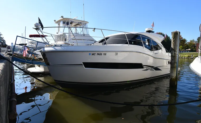 Freshwater / Great Lakes boat since new this vessel features Twin Mercruiser 6.2-litre 350-hp Gas Engines (only 391 original hours) and Mercruiser SeaCore Outdrives! Docking is a Breeze, Thanks to the Dockmate Hand-Held Joystick Remote Control, Which Allows Operation From Anywhere on the Boat, Mercury Joystick w/Skyhook Turns the Boat on a Dime and Holds it in Position When Needed. Notable features include but are not limited to the following: Air-Conditioning & Heat (2-Units, w/Remote Control), (1) Head (Vacuflush) w/Vanity/Sink/Stall Shower, Central Vacuum System, Kohler 7.5kw Generator (63 hours), Windlass Anchor w/All Chain Anchor Rode and NEW Stainless Anchor, Complete Electronics Package (Raymarine 260 Color Touchscreen Radar/Charplotter and Rear-Facing Camera, Raymarine Autopilot, Mercury Vessel View Engine Monitor and Multi-Function Display, Raymarine VHF Marine Radio w/External Speaker and Little Giant Antenna), WiFi through Vessel, Rockford Fosgate Integrated Bluetooth Stereo System w/Sirius & Pandora Radio, (3) Updated Flat-Screen TV's, Power Sunroof with Shade and Screen, Large Refrigerator/Freezer in Salon, Two Smaller Refrigerators in Cockpit Area, Microwave and Electric Cook Stove.