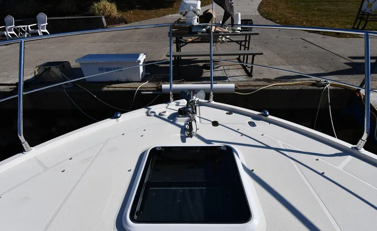 Freshwater / Great Lakes boat since new this vessel features Twin Mercruiser 6.2-litre 350-hp Gas Engines (only 391 original hours) and Mercruiser SeaCore Outdrives! Docking is a Breeze, Thanks to the Dockmate Hand-Held Joystick Remote Control, Which Allows Operation From Anywhere on the Boat, Mercury Joystick w/Skyhook Turns the Boat on a Dime and Holds it in Position When Needed. Notable features include but are not limited to the following: Air-Conditioning & Heat (2-Units, w/Remote Control), (1) Head (Vacuflush) w/Vanity/Sink/Stall Shower, Central Vacuum System, Kohler 7.5kw Generator (63 hours), Windlass Anchor w/All Chain Anchor Rode and NEW Stainless Anchor, Complete Electronics Package (Raymarine 260 Color Touchscreen Radar/Charplotter and Rear-Facing Camera, Raymarine Autopilot, Mercury Vessel View Engine Monitor and Multi-Function Display, Raymarine VHF Marine Radio w/External Speaker and Little Giant Antenna), WiFi through Vessel, Rockford Fosgate Integrated Bluetooth Stereo System w/Sirius & Pandora Radio, (3) Updated Flat-Screen TV's, Power Sunroof with Shade and Screen, Large Refrigerator/Freezer in Salon, Two Smaller Refrigerators in Cockpit Area, Microwave and Electric Cook Stove.