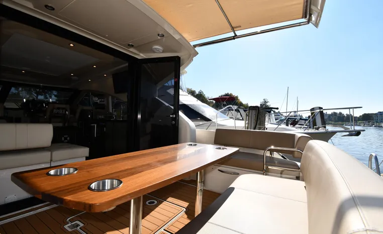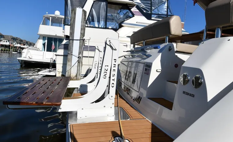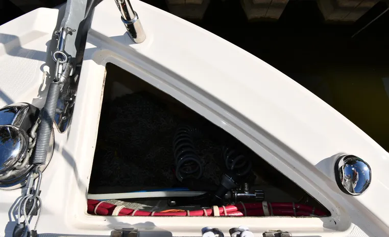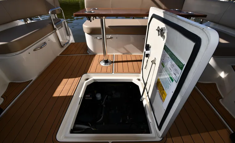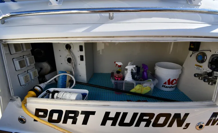 Broker Notes: Sure Shade Power Retractable Awning Over Rear Cockpit, Power Lift w/Davits on Swim Platform Can be Used for Jet Ski or Dinghy. SeaDek on Swim Platform and Rear Cockpit Deck and Entry Steps, Boat Features Storage Galore in Floor, Under Seats, Cabinets and Huge Under Deck Storage. Huge Engine Room w/Integrated Toolbox and Reverso Oil Change System, Power Glendenning, New Windshield Screens and Newer Bow Sunpads. Includes Seat Covers for Rear Cockpit Seats, Hot/Cold Shower Located at Swim Platform. All Maintenance Services Up-to-Date, Fresh Bottom Paint, Freshly Detailed. Sale includes owners manuals & maintenance records. Heated Indoor Stored. This Meticulous Owner says Proudly: This Boat Lacks Nothing!