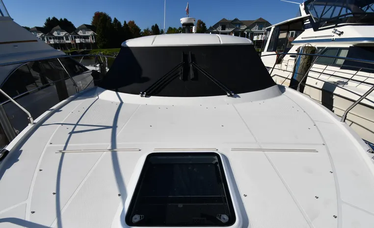 Freshwater / Great Lakes boat since new this vessel features Twin Mercruiser 6.2-litre 350-hp Gas Engines (only 391 original hours) and Mercruiser SeaCore Outdrives! Docking is a Breeze, Thanks to the Dockmate Hand-Held Joystick Remote Control, Which Allows Operation From Anywhere on the Boat, Mercury Joystick w/Skyhook Turns the Boat on a Dime and Holds it in Position When Needed. Notable features include but are not limited to the following: Air-Conditioning & Heat (2-Units, w/Remote Control), (1) Head (Vacuflush) w/Vanity/Sink/Stall Shower, Central Vacuum System, Kohler 7.5kw Generator (63 hours), Windlass Anchor w/All Chain Anchor Rode and NEW Stainless Anchor, Complete Electronics Package (Raymarine 260 Color Touchscreen Radar/Charplotter and Rear-Facing Camera, Raymarine Autopilot, Mercury Vessel View Engine Monitor and Multi-Function Display, Raymarine VHF Marine Radio w/External Speaker and Little Giant Antenna), WiFi through Vessel, Rockford Fosgate Integrated Bluetooth Stereo System w/Sirius & Pandora Radio, (3) Updated Flat-Screen TV's, Power Sunroof with Shade and Screen, Large Refrigerator/Freezer in Salon, Two Smaller Refrigerators in Cockpit Area, Microwave and Electric Cook Stove.