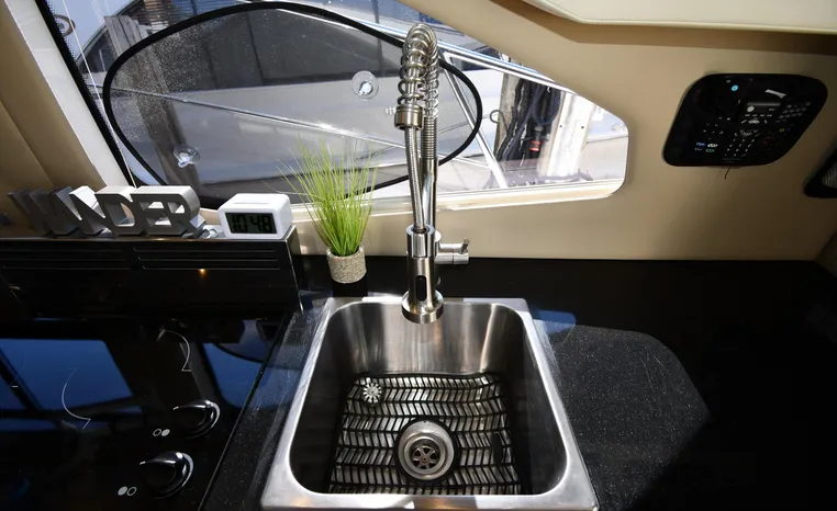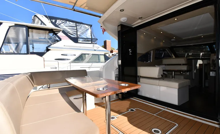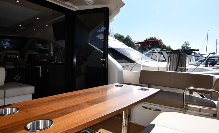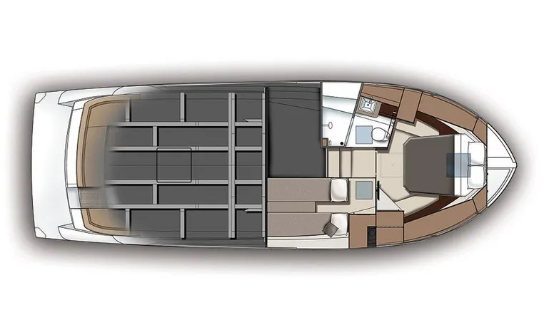 The C37 is more than a cruising yacht, she’s also a performer. Her standard twin MerCruiser 377 Magnum Bravo Three, SeaCore stern-drive engines ensure an exhilarating top speed, while her plaining hull with its 13-foot beam delivers a stable, smooth, and dry ride for all aboard. This is where on-water comfort meets cruising thrills, with a little extra flair.