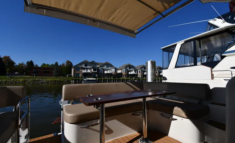 Freshwater / Great Lakes boat since new this vessel features Twin Mercruiser 6.2-litre 350-hp Gas Engines (only 391 original hours) and Mercruiser SeaCore Outdrives! Docking is a Breeze, Thanks to the Dockmate Hand-Held Joystick Remote Control, Which Allows Operation From Anywhere on the Boat, Mercury Joystick w/Skyhook Turns the Boat on a Dime and Holds it in Position When Needed. Notable features include but are not limited to the following: Air-Conditioning & Heat (2-Units, w/Remote Control), (1) Head (Vacuflush) w/Vanity/Sink/Stall Shower, Central Vacuum System, Kohler 7.5kw Generator (63 hours), Windlass Anchor w/All Chain Anchor Rode and NEW Stainless Anchor, Complete Electronics Package (Raymarine 260 Color Touchscreen Radar/Charplotter and Rear-Facing Camera, Raymarine Autopilot, Mercury Vessel View Engine Monitor and Multi-Function Display, Raymarine VHF Marine Radio w/External Speaker and Little Giant Antenna), WiFi through Vessel, Rockford Fosgate Integrated Bluetooth Stereo System w/Sirius & Pandora Radio, (3) Updated Flat-Screen TV's, Power Sunroof with Shade and Screen, Large Refrigerator/Freezer in Salon, Two Smaller Refrigerators in Cockpit Area, Microwave and Electric Cook Stove.