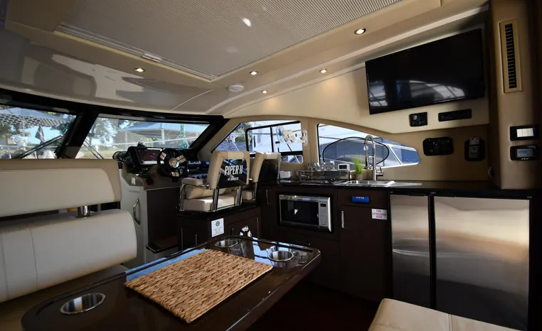 Freshwater / Great Lakes boat since new this vessel features Twin Mercruiser 6.2-litre 350-hp Gas Engines (only 391 original hours) and Mercruiser SeaCore Outdrives! Docking is a Breeze, Thanks to the Dockmate Hand-Held Joystick Remote Control, Which Allows Operation From Anywhere on the Boat, Mercury Joystick w/Skyhook Turns the Boat on a Dime and Holds it in Position When Needed. Notable features include but are not limited to the following: Air-Conditioning & Heat (2-Units, w/Remote Control), (1) Head (Vacuflush) w/Vanity/Sink/Stall Shower, Central Vacuum System, Kohler 7.5kw Generator (63 hours), Windlass Anchor w/All Chain Anchor Rode and NEW Stainless Anchor, Complete Electronics Package (Raymarine 260 Color Touchscreen Radar/Charplotter and Rear-Facing Camera, Raymarine Autopilot, Mercury Vessel View Engine Monitor and Multi-Function Display, Raymarine VHF Marine Radio w/External Speaker and Little Giant Antenna), WiFi through Vessel, Rockford Fosgate Integrated Bluetooth Stereo System w/Sirius & Pandora Radio, (3) Updated Flat-Screen TV's, Power Sunroof with Shade and Screen, Large Refrigerator/Freezer in Salon, Two Smaller Refrigerators in Cockpit Area, Microwave and Electric Cook Stove.