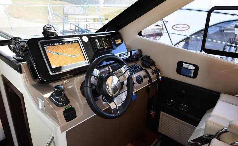 Freshwater / Great Lakes boat since new this vessel features Twin Mercruiser 6.2-litre 350-hp Gas Engines (only 391 original hours) and Mercruiser SeaCore Outdrives! Docking is a Breeze, Thanks to the Dockmate Hand-Held Joystick Remote Control, Which Allows Operation From Anywhere on the Boat, Mercury Joystick w/Skyhook Turns the Boat on a Dime and Holds it in Position When Needed. Notable features include but are not limited to the following: Air-Conditioning & Heat (2-Units, w/Remote Control), (1) Head (Vacuflush) w/Vanity/Sink/Stall Shower, Central Vacuum System, Kohler 7.5kw Generator (63 hours), Windlass Anchor w/All Chain Anchor Rode and NEW Stainless Anchor, Complete Electronics Package (Raymarine 260 Color Touchscreen Radar/Charplotter and Rear-Facing Camera, Raymarine Autopilot, Mercury Vessel View Engine Monitor and Multi-Function Display, Raymarine VHF Marine Radio w/External Speaker and Little Giant Antenna), WiFi through Vessel, Rockford Fosgate Integrated Bluetooth Stereo System w/Sirius & Pandora Radio, (3) Updated Flat-Screen TV's, Power Sunroof with Shade and Screen, Large Refrigerator/Freezer in Salon, Two Smaller Refrigerators in Cockpit Area, Microwave and Electric Cook Stove.