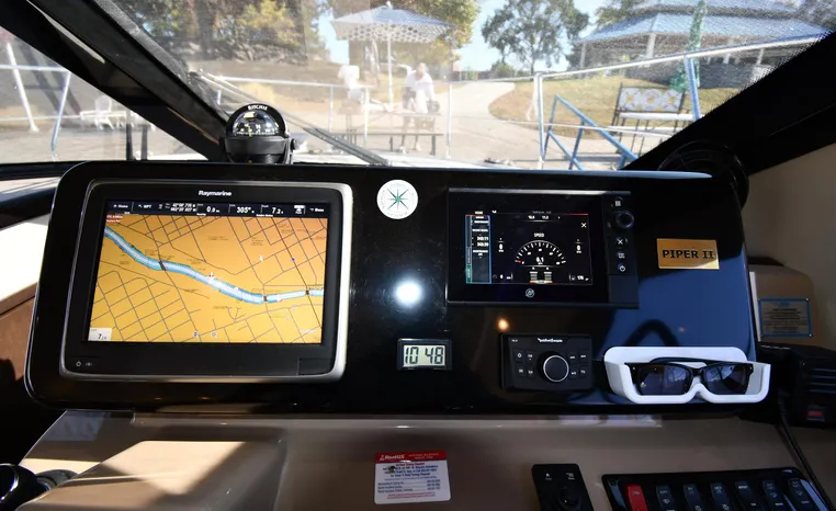 Freshwater / Great Lakes boat since new this vessel features Twin Mercruiser 6.2-litre 350-hp Gas Engines (only 391 original hours) and Mercruiser SeaCore Outdrives! Docking is a Breeze, Thanks to the Dockmate Hand-Held Joystick Remote Control, Which Allows Operation From Anywhere on the Boat, Mercury Joystick w/Skyhook Turns the Boat on a Dime and Holds it in Position When Needed. Notable features include but are not limited to the following: Air-Conditioning & Heat (2-Units, w/Remote Control), (1) Head (Vacuflush) w/Vanity/Sink/Stall Shower, Central Vacuum System, Kohler 7.5kw Generator (63 hours), Windlass Anchor w/All Chain Anchor Rode and NEW Stainless Anchor, Complete Electronics Package (Raymarine 260 Color Touchscreen Radar/Charplotter and Rear-Facing Camera, Raymarine Autopilot, Mercury Vessel View Engine Monitor and Multi-Function Display, Raymarine VHF Marine Radio w/External Speaker and Little Giant Antenna), WiFi through Vessel, Rockford Fosgate Integrated Bluetooth Stereo System w/Sirius & Pandora Radio, (3) Updated Flat-Screen TV's, Power Sunroof with Shade and Screen, Large Refrigerator/Freezer in Salon, Two Smaller Refrigerators in Cockpit Area, Microwave and Electric Cook Stove.