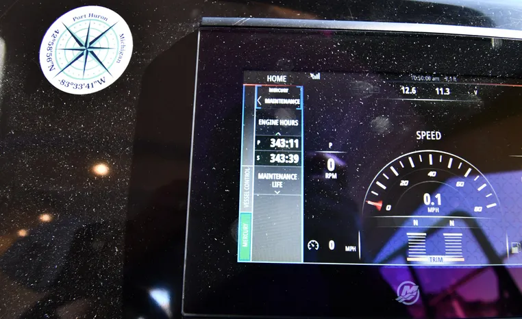 Freshwater / Great Lakes boat since new this vessel features Twin Mercruiser 6.2-litre 350-hp Gas Engines (only 391 original hours) and Mercruiser SeaCore Outdrives! Docking is a Breeze, Thanks to the Dockmate Hand-Held Joystick Remote Control, Which Allows Operation From Anywhere on the Boat, Mercury Joystick w/Skyhook Turns the Boat on a Dime and Holds it in Position When Needed. Notable features include but are not limited to the following: Air-Conditioning & Heat (2-Units, w/Remote Control), (1) Head (Vacuflush) w/Vanity/Sink/Stall Shower, Central Vacuum System, Kohler 7.5kw Generator (63 hours), Windlass Anchor w/All Chain Anchor Rode and NEW Stainless Anchor, Complete Electronics Package (Raymarine 260 Color Touchscreen Radar/Charplotter and Rear-Facing Camera, Raymarine Autopilot, Mercury Vessel View Engine Monitor and Multi-Function Display, Raymarine VHF Marine Radio w/External Speaker and Little Giant Antenna), WiFi through Vessel, Rockford Fosgate Integrated Bluetooth Stereo System w/Sirius & Pandora Radio, (3) Updated Flat-Screen TV's, Power Sunroof with Shade and Screen, Large Refrigerator/Freezer in Salon, Two Smaller Refrigerators in Cockpit Area, Microwave and Electric Cook Stove.