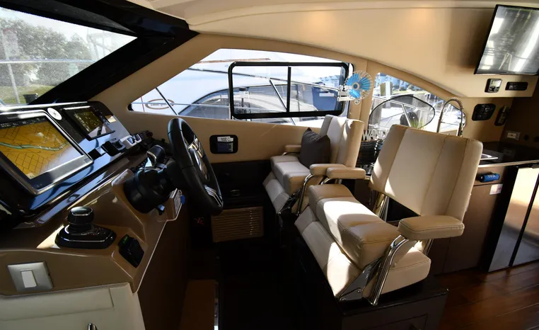Freshwater / Great Lakes boat since new this vessel features Twin Mercruiser 6.2-litre 350-hp Gas Engines (only 391 original hours) and Mercruiser SeaCore Outdrives! Docking is a Breeze, Thanks to the Dockmate Hand-Held Joystick Remote Control, Which Allows Operation From Anywhere on the Boat, Mercury Joystick w/Skyhook Turns the Boat on a Dime and Holds it in Position When Needed. Notable features include but are not limited to the following: Air-Conditioning & Heat (2-Units, w/Remote Control), (1) Head (Vacuflush) w/Vanity/Sink/Stall Shower, Central Vacuum System, Kohler 7.5kw Generator (63 hours), Windlass Anchor w/All Chain Anchor Rode and NEW Stainless Anchor, Complete Electronics Package (Raymarine 260 Color Touchscreen Radar/Charplotter and Rear-Facing Camera, Raymarine Autopilot, Mercury Vessel View Engine Monitor and Multi-Function Display, Raymarine VHF Marine Radio w/External Speaker and Little Giant Antenna), WiFi through Vessel, Rockford Fosgate Integrated Bluetooth Stereo System w/Sirius & Pandora Radio, (3) Updated Flat-Screen TV's, Power Sunroof with Shade and Screen, Large Refrigerator/Freezer in Salon, Two Smaller Refrigerators in Cockpit Area, Microwave and Electric Cook Stove.