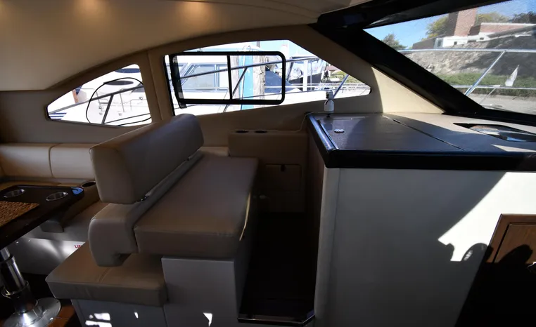 Freshwater / Great Lakes boat since new this vessel features Twin Mercruiser 6.2-litre 350-hp Gas Engines (only 391 original hours) and Mercruiser SeaCore Outdrives! Docking is a Breeze, Thanks to the Dockmate Hand-Held Joystick Remote Control, Which Allows Operation From Anywhere on the Boat, Mercury Joystick w/Skyhook Turns the Boat on a Dime and Holds it in Position When Needed. Notable features include but are not limited to the following: Air-Conditioning & Heat (2-Units, w/Remote Control), (1) Head (Vacuflush) w/Vanity/Sink/Stall Shower, Central Vacuum System, Kohler 7.5kw Generator (63 hours), Windlass Anchor w/All Chain Anchor Rode and NEW Stainless Anchor, Complete Electronics Package (Raymarine 260 Color Touchscreen Radar/Charplotter and Rear-Facing Camera, Raymarine Autopilot, Mercury Vessel View Engine Monitor and Multi-Function Display, Raymarine VHF Marine Radio w/External Speaker and Little Giant Antenna), WiFi through Vessel, Rockford Fosgate Integrated Bluetooth Stereo System w/Sirius & Pandora Radio, (3) Updated Flat-Screen TV's, Power Sunroof with Shade and Screen, Large Refrigerator/Freezer in Salon, Two Smaller Refrigerators in Cockpit Area, Microwave and Electric Cook Stove.