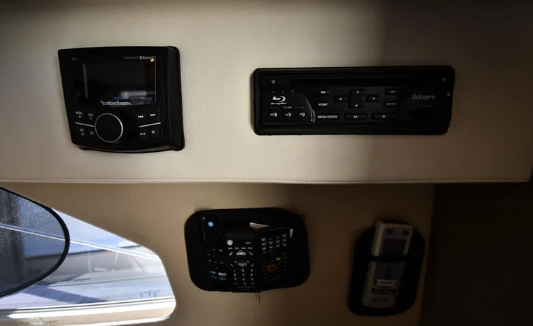 Freshwater / Great Lakes boat since new this vessel features Twin Mercruiser 6.2-litre 350-hp Gas Engines (only 391 original hours) and Mercruiser SeaCore Outdrives! Docking is a Breeze, Thanks to the Dockmate Hand-Held Joystick Remote Control, Which Allows Operation From Anywhere on the Boat, Mercury Joystick w/Skyhook Turns the Boat on a Dime and Holds it in Position When Needed. Notable features include but are not limited to the following: Air-Conditioning & Heat (2-Units, w/Remote Control), (1) Head (Vacuflush) w/Vanity/Sink/Stall Shower, Central Vacuum System, Kohler 7.5kw Generator (63 hours), Windlass Anchor w/All Chain Anchor Rode and NEW Stainless Anchor, Complete Electronics Package (Raymarine 260 Color Touchscreen Radar/Charplotter and Rear-Facing Camera, Raymarine Autopilot, Mercury Vessel View Engine Monitor and Multi-Function Display, Raymarine VHF Marine Radio w/External Speaker and Little Giant Antenna), WiFi through Vessel, Rockford Fosgate Integrated Bluetooth Stereo System w/Sirius & Pandora Radio, (3) Updated Flat-Screen TV's, Power Sunroof with Shade and Screen, Large Refrigerator/Freezer in Salon, Two Smaller Refrigerators in Cockpit Area, Microwave and Electric Cook Stove.