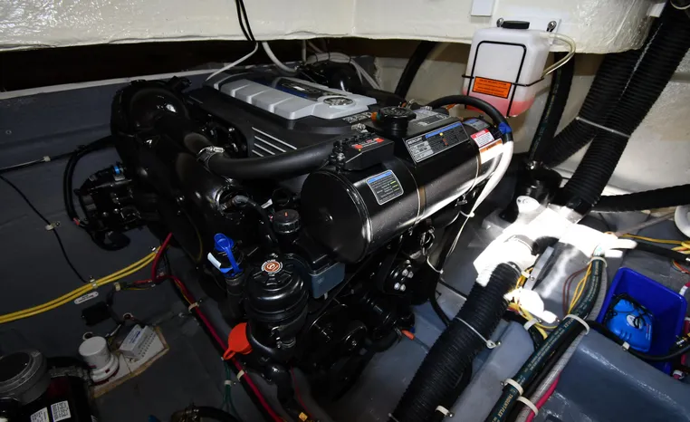 Freshwater / Great Lakes boat since new this vessel features Twin Mercruiser 6.2-litre 350-hp Gas Engines (only 391 original hours) and Mercruiser SeaCore Outdrives! Docking is a Breeze, Thanks to the Dockmate Hand-Held Joystick Remote Control, Which Allows Operation From Anywhere on the Boat, Mercury Joystick w/Skyhook Turns the Boat on a Dime and Holds it in Position When Needed. Notable features include but are not limited to the following: Air-Conditioning & Heat (2-Units, w/Remote Control), (1) Head (Vacuflush) w/Vanity/Sink/Stall Shower, Central Vacuum System, Kohler 7.5kw Generator (63 hours), Windlass Anchor w/All Chain Anchor Rode and NEW Stainless Anchor, Complete Electronics Package (Raymarine 260 Color Touchscreen Radar/Charplotter and Rear-Facing Camera, Raymarine Autopilot, Mercury Vessel View Engine Monitor and Multi-Function Display, Raymarine VHF Marine Radio w/External Speaker and Little Giant Antenna), WiFi through Vessel, Rockford Fosgate Integrated Bluetooth Stereo System w/Sirius & Pandora Radio, (3) Updated Flat-Screen TV's, Power Sunroof with Shade and Screen, Large Refrigerator/Freezer in Salon, Two Smaller Refrigerators in Cockpit Area, Microwave and Electric Cook Stove.