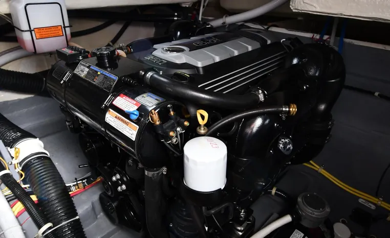 Freshwater / Great Lakes boat since new this vessel features Twin Mercruiser 6.2-litre 350-hp Gas Engines (only 391 original hours) and Mercruiser SeaCore Outdrives! Docking is a Breeze, Thanks to the Dockmate Hand-Held Joystick Remote Control, Which Allows Operation From Anywhere on the Boat, Mercury Joystick w/Skyhook Turns the Boat on a Dime and Holds it in Position When Needed. Notable features include but are not limited to the following: Air-Conditioning & Heat (2-Units, w/Remote Control), (1) Head (Vacuflush) w/Vanity/Sink/Stall Shower, Central Vacuum System, Kohler 7.5kw Generator (63 hours), Windlass Anchor w/All Chain Anchor Rode and NEW Stainless Anchor, Complete Electronics Package (Raymarine 260 Color Touchscreen Radar/Charplotter and Rear-Facing Camera, Raymarine Autopilot, Mercury Vessel View Engine Monitor and Multi-Function Display, Raymarine VHF Marine Radio w/External Speaker and Little Giant Antenna), WiFi through Vessel, Rockford Fosgate Integrated Bluetooth Stereo System w/Sirius & Pandora Radio, (3) Updated Flat-Screen TV's, Power Sunroof with Shade and Screen, Large Refrigerator/Freezer in Salon, Two Smaller Refrigerators in Cockpit Area, Microwave and Electric Cook Stove.